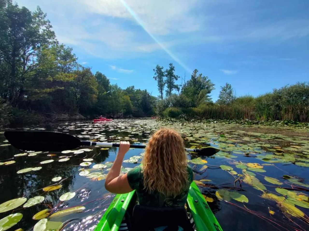 Izlazimo. Ipak je ljepše na suncu, među zelenim drvećem. Opet skidamo suvišnu odjeću i brzamo niz stepenice. Jer čeka nas vodeni raj, kajakarenje na rječici Novčici.