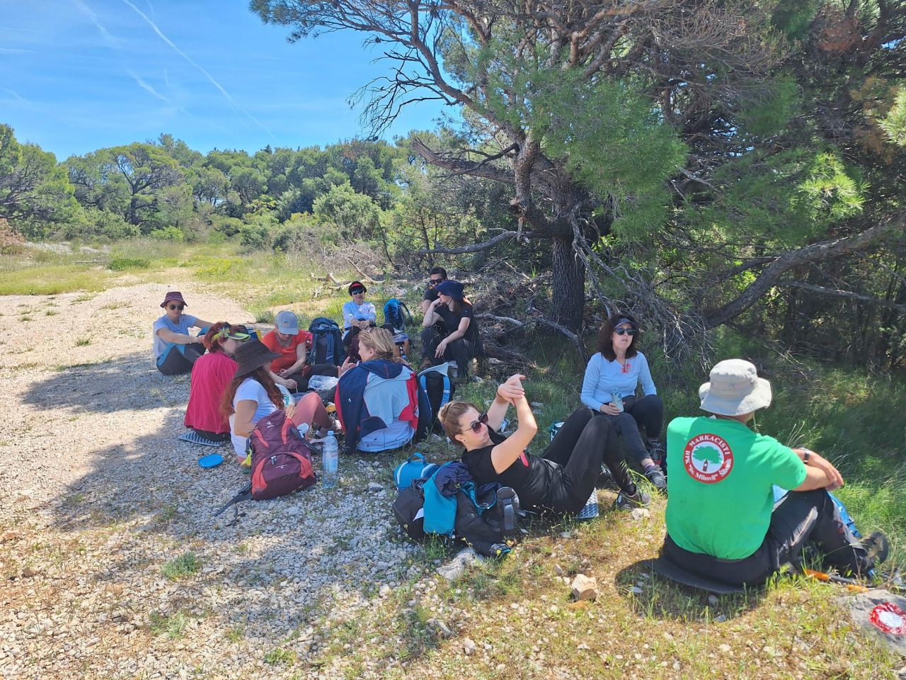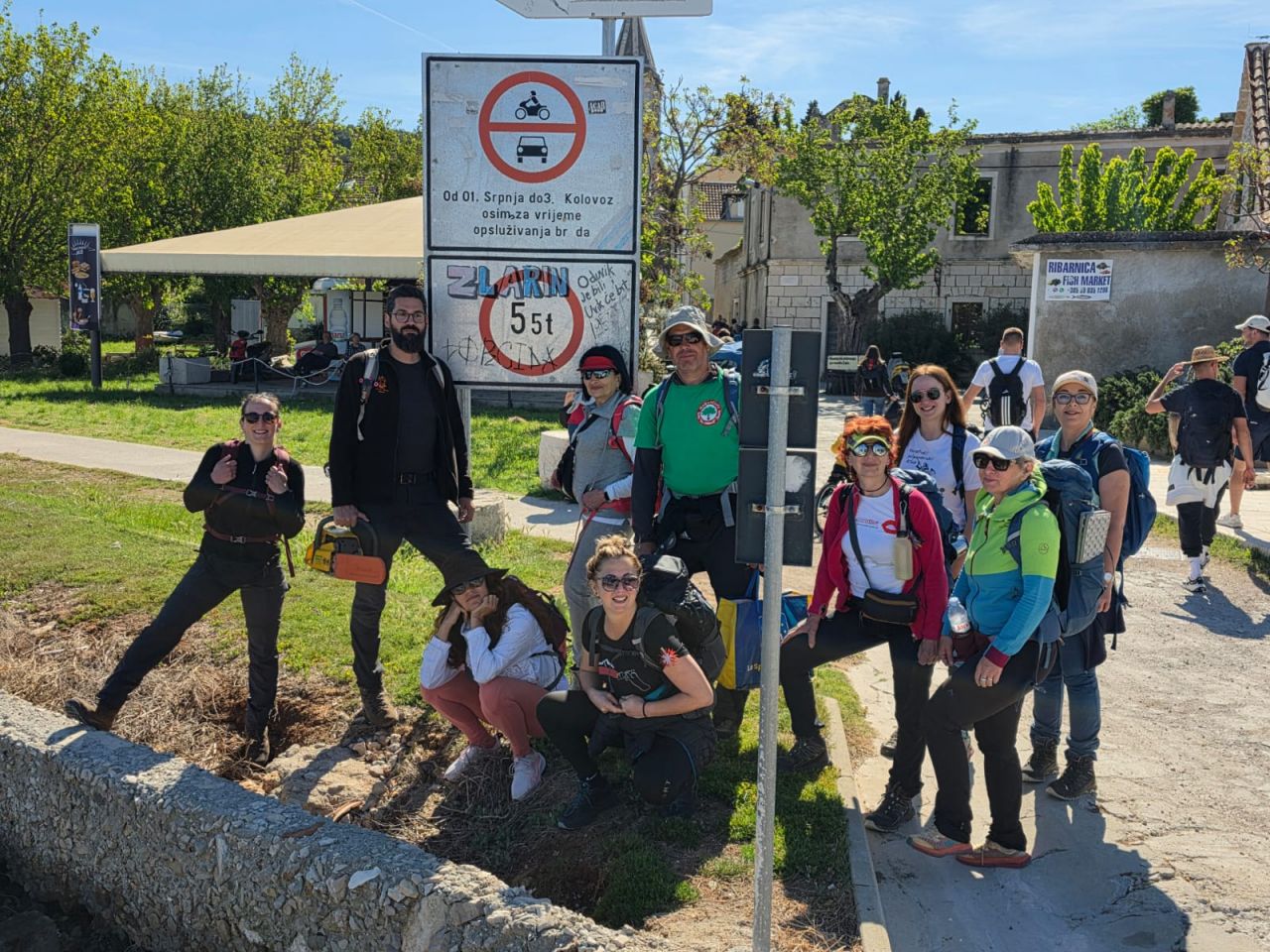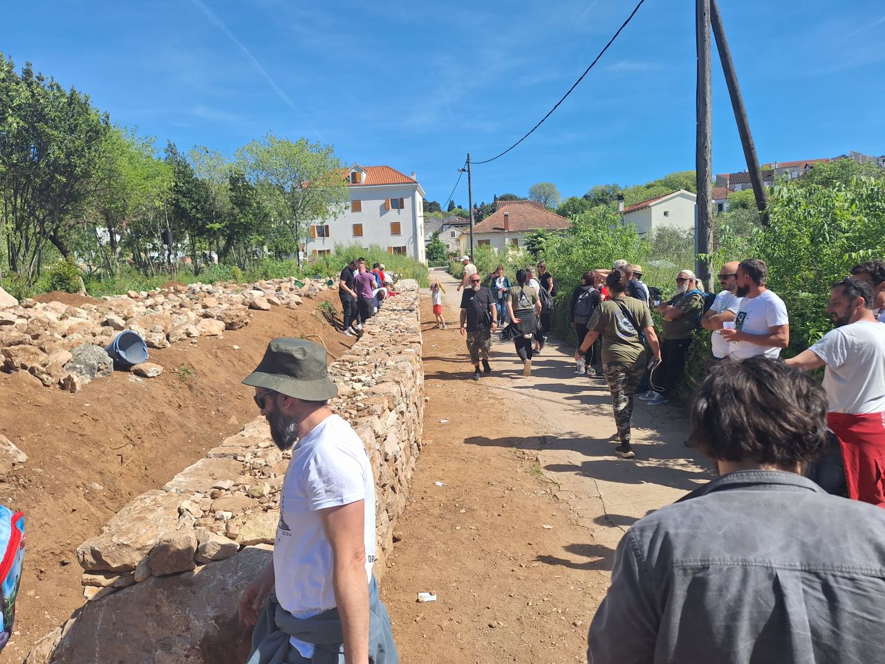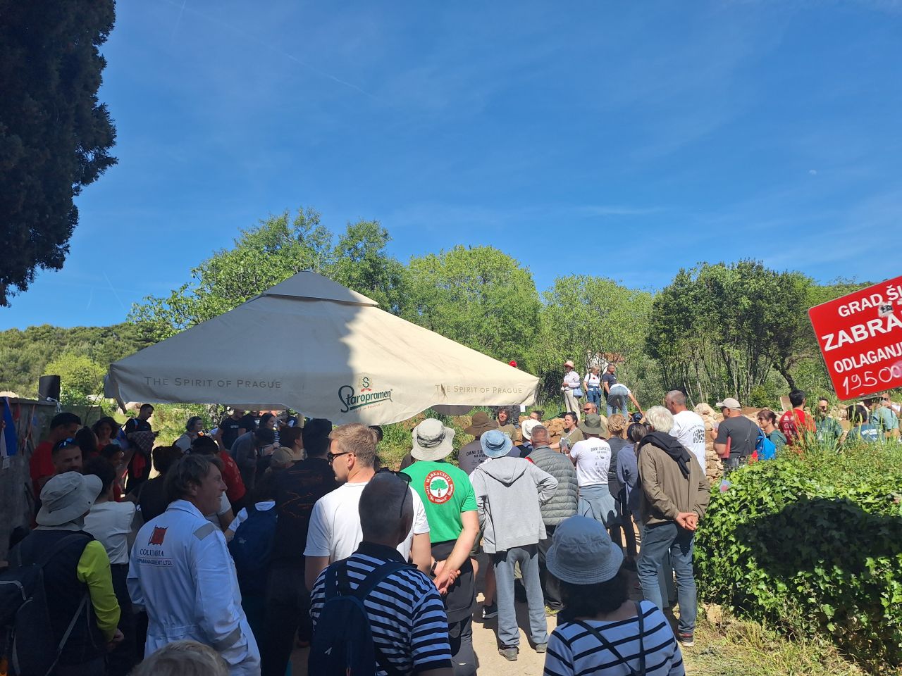 I tako sve do vrha i repetitora, gdje radimo kraku pauzu i grickanje jer nas je Ana iz udruge Dragodid koji je suorganizator događaja zove i kaže nas čeka nas ručak kod Crkve. Spuštamo se kružno makadamom i pravo na ručak. Poslije ručka je proglašenje pobjednika gradnje suhozida o čemu moram par riječi: Suhozid je rađen po principu 12 ekipa koje rade po 2 metra, ali tako da se svaki slijedeći spaja s prethodnom dionicom. Zemlju je donirao mještanin, kako bi se proširio put do župnog dvora i kako bi vatrogasno vozilo moglo proći (za svaku pohvalu u današnje vrijeme), a zid ostaje i napravljen je kao potpora za budući put. Na natjecanje je bilo prijavljeno 20-ak ekipa, ali su morali odabrati 12, gdje je jedna od prednosti bila da ekipa ima ženskog člana. Dodjela nagrada je protekla u svečanom tonu, nakon čega smo pozvani u Muzej koraljara. Posjetili smo Muzej i vratili se u centar na piće, nakon kojeg su neki otišli „utoćati“ noge u more, a mi manje hrabri čekali Laru za povratak.