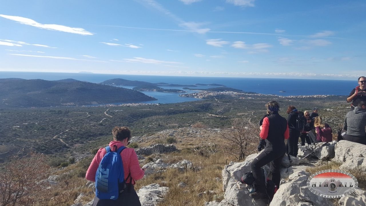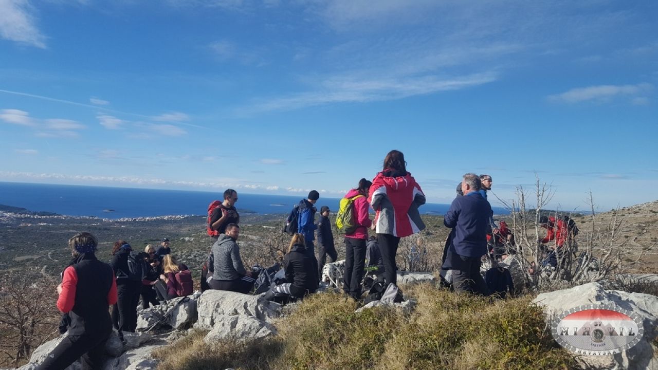 Dolazimo na vrh slikovitog brdašca Jarebinjak, s pogledom na Rogoznički arhipelag. Kako nam je ekipa sastavljena od ljudi različite fizičke spremnosti i kondicije, radimo česte pauze da svi ipak budemo na okupu. U dijelu kad se spuštamo kroz taj krševiti kamenjar, jedna kolegica doživljava nezgodu, te joj naši spremni vodiči i kolege planinari priskaču u pomoć i vode je do obližnjeg naselja gdje se zbrinjava. Ostaje nam lagano gorak okus u ustima, iako se takve stvari vrlo lako dogode i ne mogu u potpunosti spriječiti niti najboljim pripremama. Idemo dalje, opet skoncentrirani na kamenjar, koji plijeni pažnju ljepotom i surovošću. Dolazimo do lokve Baljenice, naše sljedeće pauze, krajolika kojeg smo u protekloj godini svojim radom skoro pripitomili. To je bila neprohodna šikara koju smo zajedno s lovcima pročistili i uredili. Tu počinje naš uspon na Lenik, najveće brdo ovog kraja, čitavih 391m nv. Na vrhu zasluženi odmor i marenda. Vadu se kolači, spiza, iće i piće. Zavaljeni po škrapama upijamo zrake siječanjskog sunca. Siti i zadovoljni lagano krećemo prema Sapinim Docima. Tu vođenje preuzima Eugen, a Julija ima ulogu metle. Idemo stazom preko Orljaka, a spuštajući se, većina nas, videći cestu, pogrešno misli da je našoj avanturi brzo kraj. Onaj tko pozna našu Juliju zna da su njezine ture sve samo ne jednostavne, pa tako i ova. Šlag na kraju je trenutak kad, došavši skoro do magistrale, naša staza počinje novi uspon do Mocira i motajući se među maslinicima završava u kanjonu. E, tu se već nervozni i umorni dio planinara odvaja i odlazi prema moru, a nekolicina jakih, predvođenih Eugenom odrađuje cijelu stazu dužine više od 25 km.
