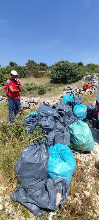Četrdesetak vridnih ručica je unatoč pasjoj vrućini, skupila pozamašnu količinu smeća od uvale Borovica pa do mitske Planke. Tužno je bilo viditi di sve to smeće koje je na rtu Planka sakriveno od pogleda iza starih suhozida.
