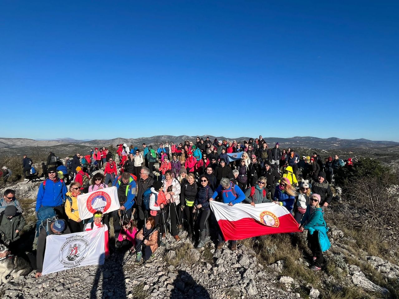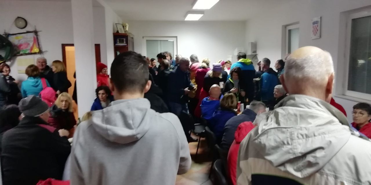 Sreća da mi je prijateljica dala kuhano jaje pa sam s tim zaokružila marendu koja se vjerojatno može mjeriti sa hranom iz Sheratona. Odmarali smo na vrhu pa se svi zajedno slikali i lagano krenuli. Moram priznati da mi je teže bilo ići nizbrdo nego uzbrdo. Ajde, OK, malo sam i grintala da me bole koljena, ali sam se zapričala s prijateljicom i u toj ćakuli prođe i bol. I kave smo se zaželjeli pa smo i tu malo zagrintali. Koju minutu prije nego je sunce zašlo, stigli smo do kraja puta, ali ne i kraja dana. Spustili smo se do Rogoznice, dočekali kavicu, svi sretni i opušteni. Ali nekima je već krulilo jer se zna da nas čeka fažol u vatrogasnom domu. Hvala dragim ljudima koji su ga skuhali jer smo se dobro najeli. Imali smo DJ-a i uz glazbu smo samo produžili dobro raspoloženje s Lenika.