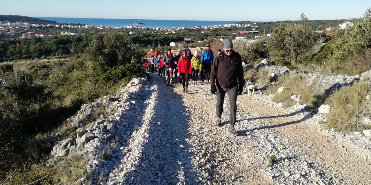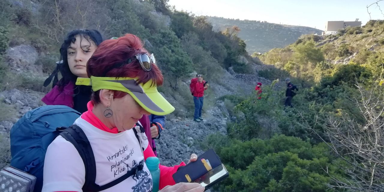 Jedva sam dočekala. Ovo mi je drugi put da se penjem tamo, ali moram priznati sam jednako sretna kao i da se penjem prvi put. Kao pačići prelazimo magistralu, vozači nas puštaju. Valjda kuže da je bolje da se kolona ne razdvaja. Prolazimo pored stare vojarne i polako se mijenjaju boja i miris okoliša. Razbuđujemo se i ćakulamo dok osvajamo prvo brdo prema Leniku. Pogled prema moru i Rogoznici, divota!