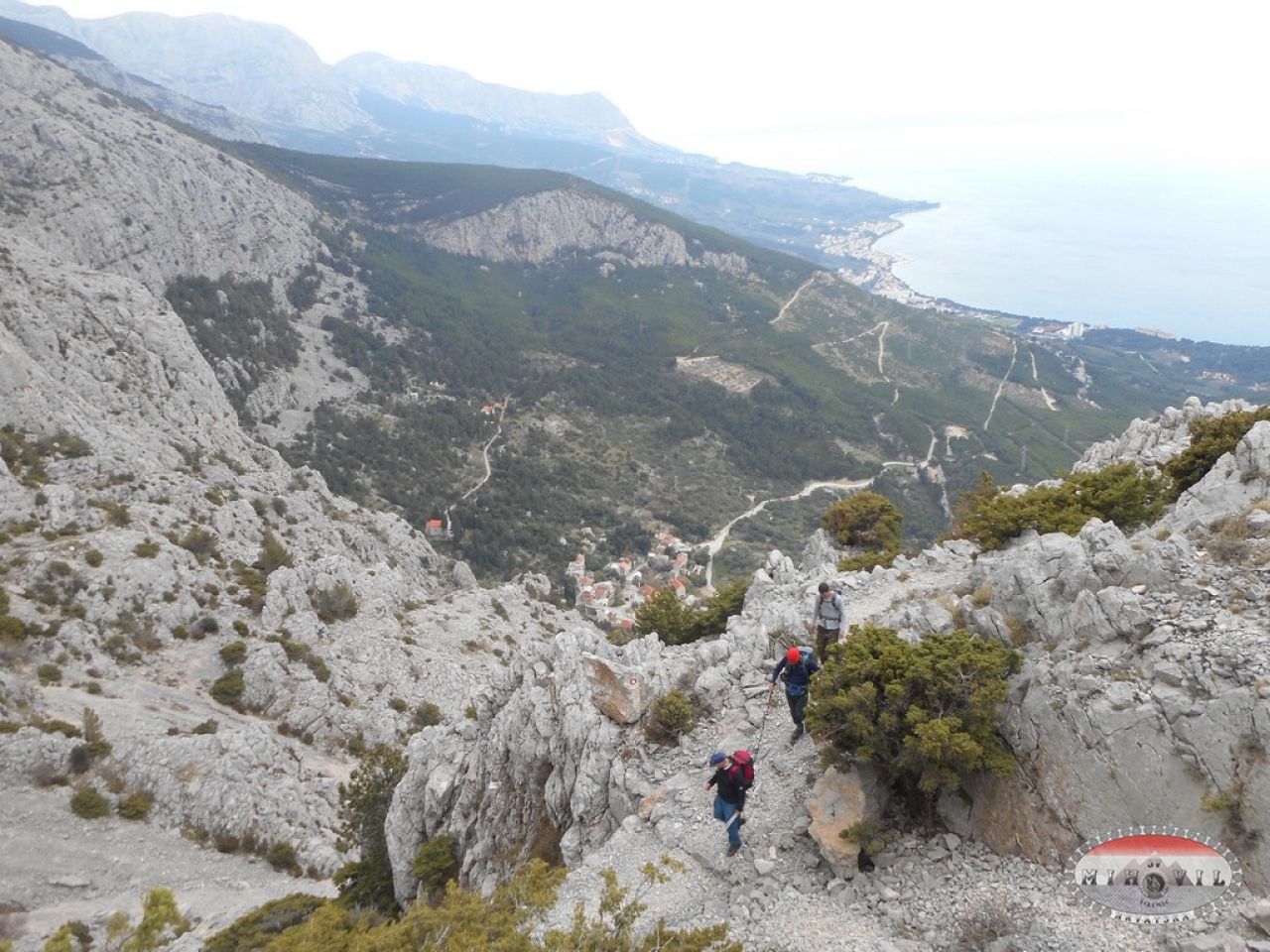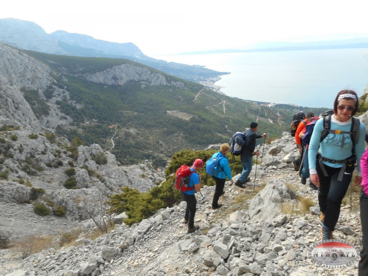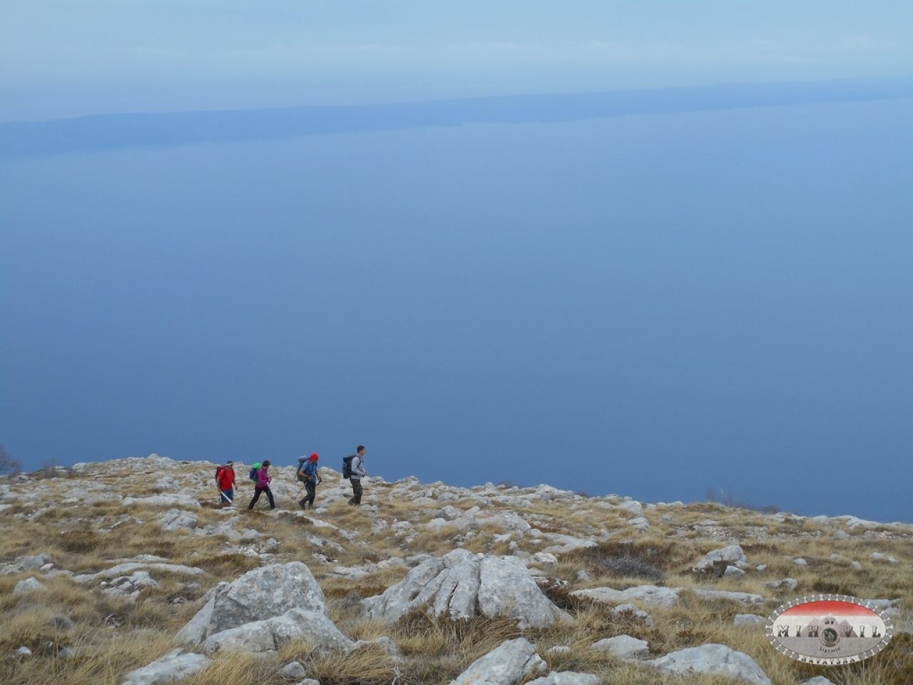 Nakon marende penjemo se dalje, hrbat se približava nama ili mi njemu, ne znam više. Dišem na škrge, psujem Antoniu i Biokovo, a Mate priča priču o guranju kolege uz Kilimanjaro i objašnjava Makaranima da su žene izdržljivije od muškaraca, da se ne trebam ja sad baš tu nešto previše odmarati, jer samo što nismo. I tako smo stigli na Pržinovac, poletište onih luđaka koji se padobranima bacaju s planine. Kad bolje razmislim, nije to ni tako loše, samo se baciš, ne moraš na noge dolje. Ne mogu vjerovati gdje sam. S lijeve strane Hvar, s desne krš, ispred nas Sv. Jure.