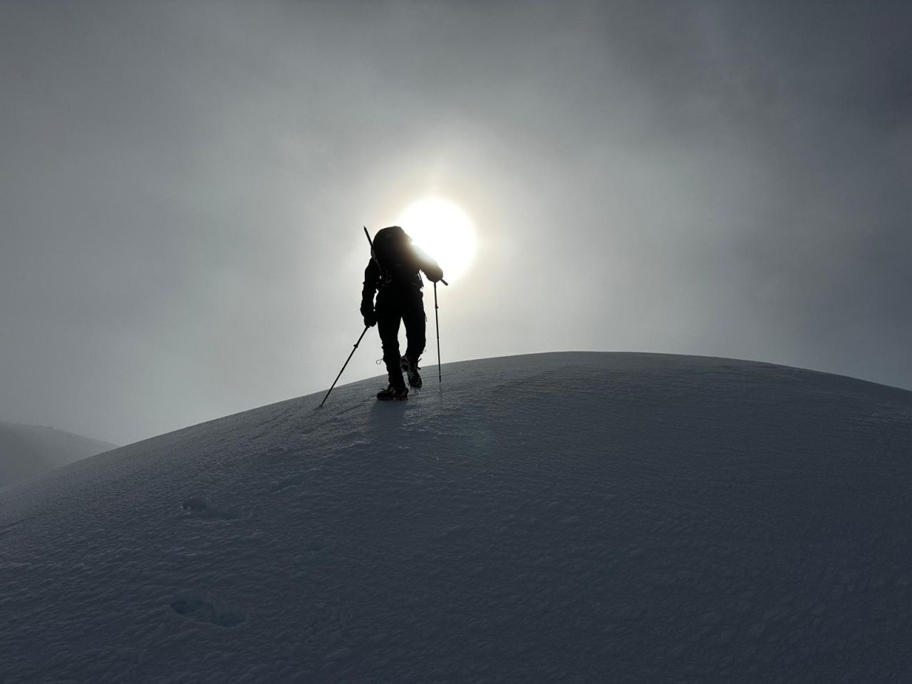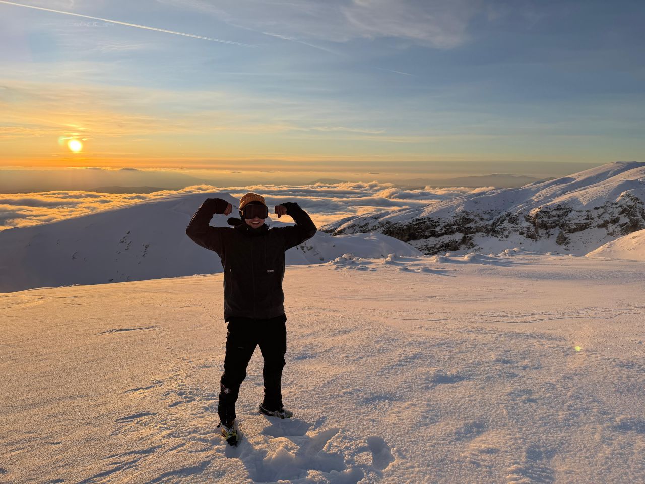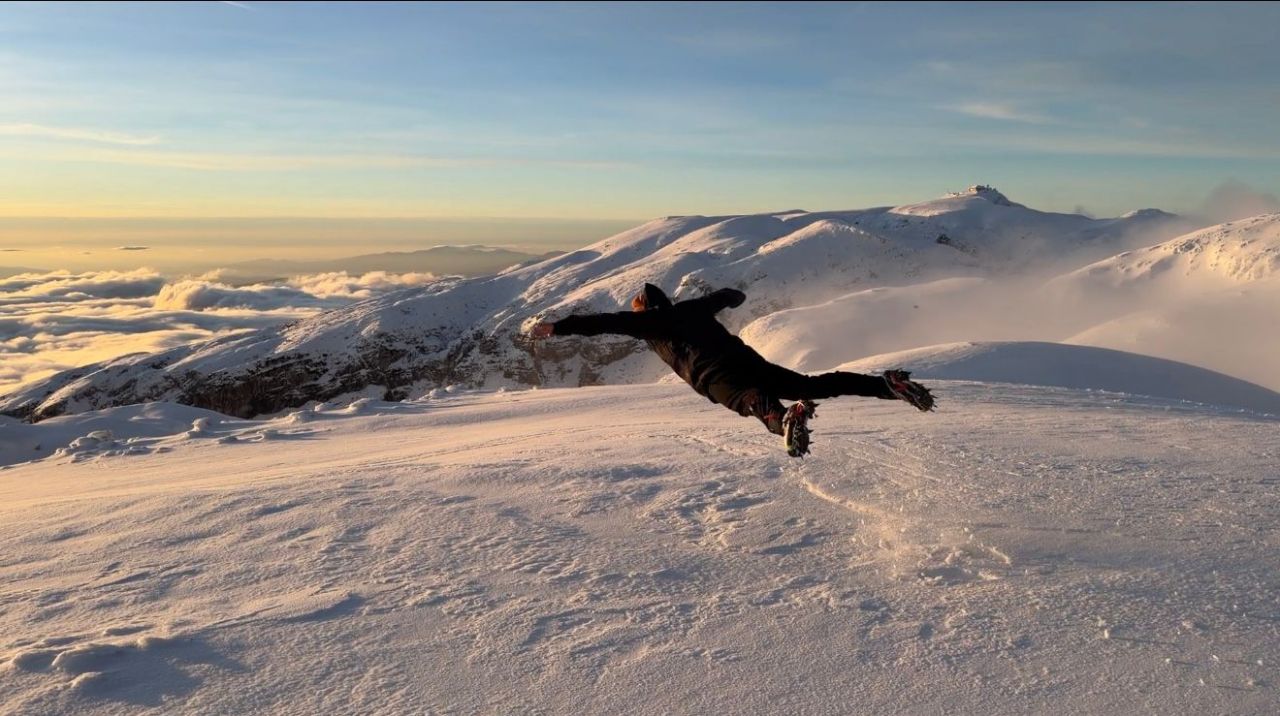 U subotu smo se probudili u 4:45 h i nakon doručka krenuli autom na makadam prema gore. Parkirali smo na 1650 mnv na 4.5 km od skloništa. Uspon smo započeli u 7 sati te za malo više od 2 sata hoda stižemo do skloništa. Na stazi nije bilo nikoga pa cijelo vrijeme prtimo snijeg. Razbijamo led na vratima i ulazimo unutra, ali je ove godine za razliku od lani sklonište u puno lošijem stanju. Iako se strop urušava, sklonište nam pruža dobru zaštitu od vjetra i hladnoće dok marendajemo i pripremamo se za izlazak na greben Čvrsnice. Cilj nam je bio obići vrhove iz “Challenge 2000+”, a plan prvo otići do najudaljenijeg. Uz jako lošu vidljivost na prvi vrh, Kotu 2038 stižemo tek nešto prije 14 sati. Na povratku obilazimo Kotu 2065, Veliki Jelinak i Kotu 2154. Cilj nam je sad strminu iza Velikog Jelinka prijeći prije mraka i taman uz zalazak sunca to i uspijevamo.