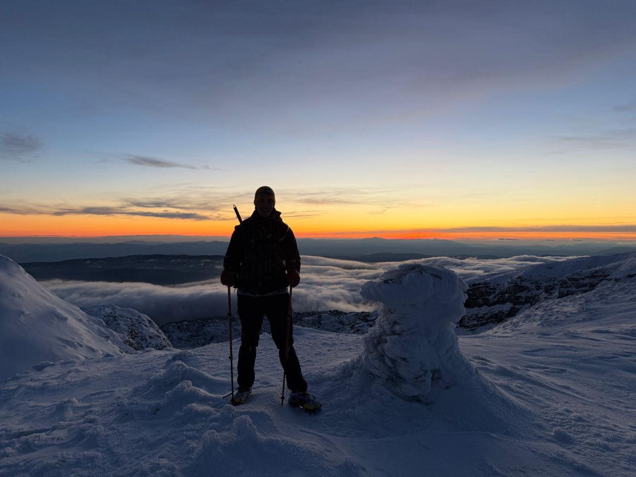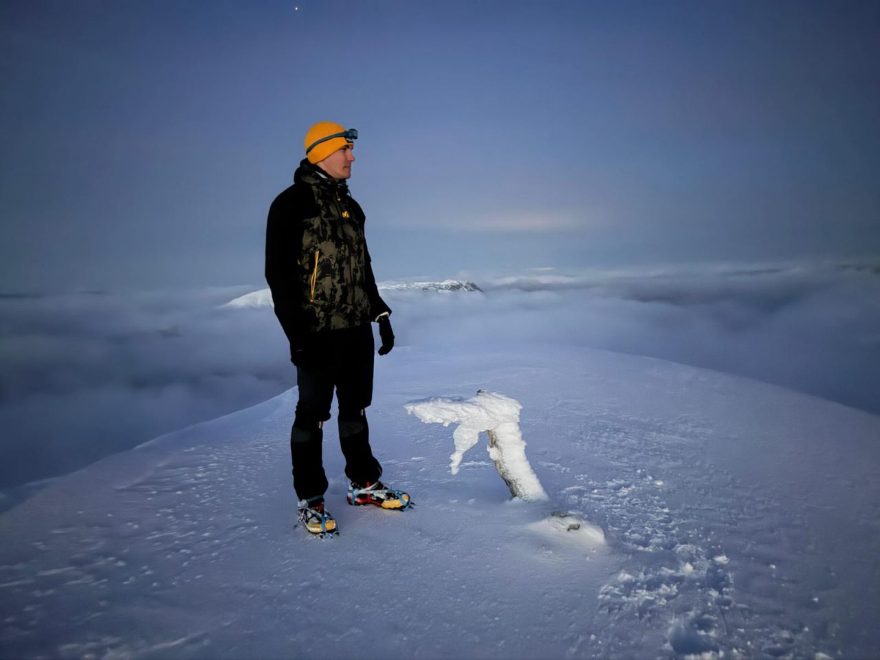 Nakon predivnog zalaska i smirivanja vjetra, po mraku još obilazimo Kapke i Kotu 2182 te odlazimo na Pločno pojesti. Razmišljamo kako smo imali idealne uvjete za doživjeti zimski uspon. Sa Pločnog smo krenuli malo iza 19 h te nešto nakon 21 h dolazimo do auta.