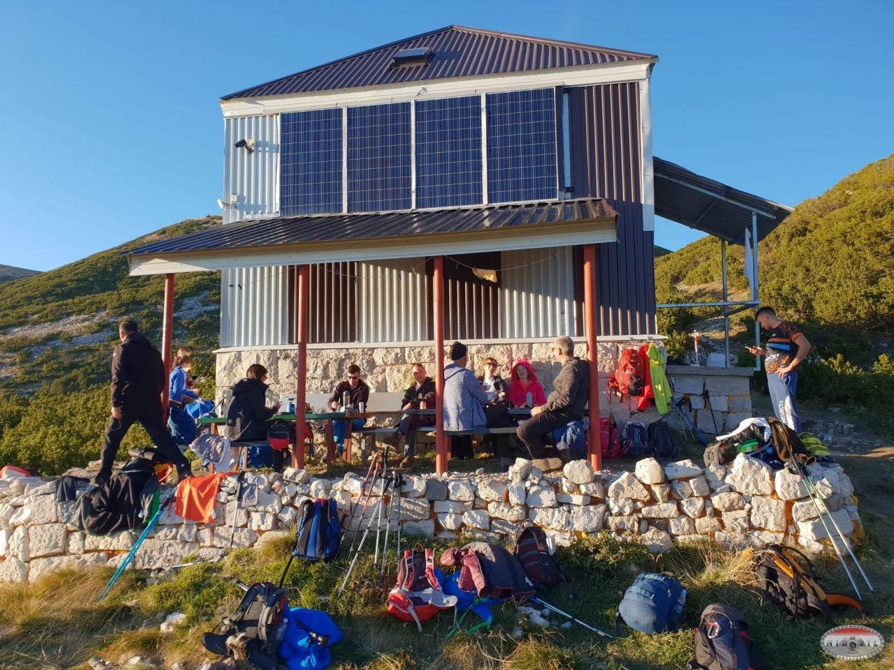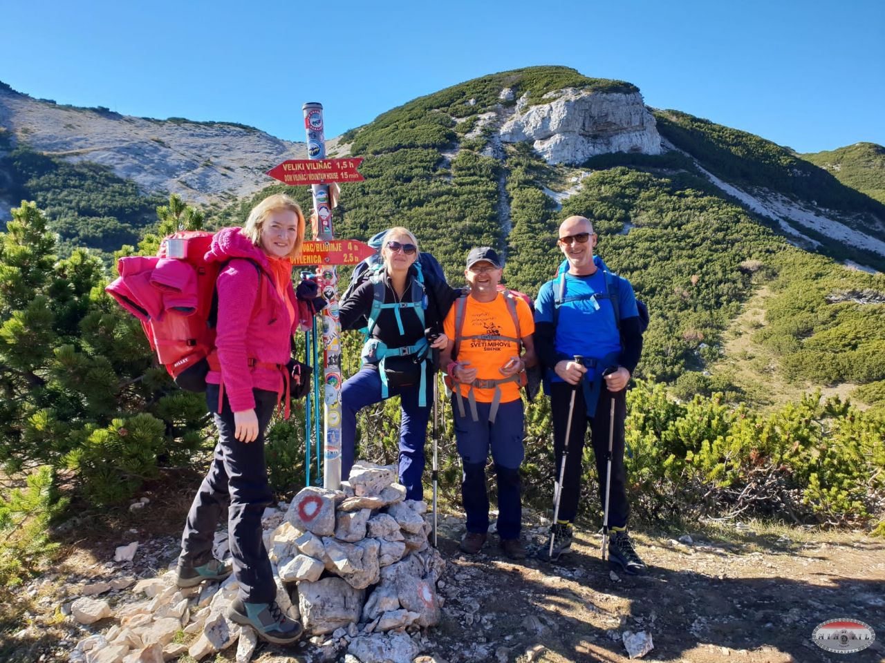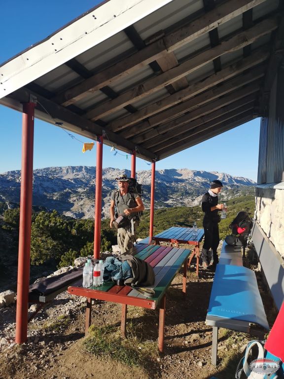 A iza toga jedan dio se pridružuje veselim domaćinima a drugi dio se zabavlja igrajući pantominu. Zajednički zaključujemo kako je dom na Vilincu možda i dom sa najlipšom pozicijom ikad. Pogled s njegove terase puca na moćni zid Pločnog, naš sutrašnji cilj koji izgleda tako daleko i tako nemoguće. Topla atmosfera doma, umor i pisma veselih domaćina nas je sve ušuškala vrlo brzo. Slijedi harmonija i rapsodija u zajedničkoj spavaonici. I žensko i muško i staro i mlado se izmjenjuje u hrkanju i prdenju. I to bez trunke ljutnje i stresa. O kvaliteti grupe ću na kraju, jer to zaslužuje par slova. Ujutro se budimo a da ni sami nismo sigurni kad smo se probudili, jer makla se ura, a mi ne znamo dali naši pametni telefoni miču ure i kad nisu povezani na Internet. Miču. Nakon doručka sa smješkom na licu krećemo u još jedan prekrasan dan. Pozdravljamo domaćine i krećemo prema Pločnom. Izmjenjuju se krš i kleka sa borovim šumicama. Sunce grije a mi prolazeći kraj Peharovih stanova nakon dva ipo sata stižemo do križanja sa stazom koja vodi u Masnu luku. Ruksaci su sve teži iako se dosta popilo tekućine iz njih, ali dalje se mora.