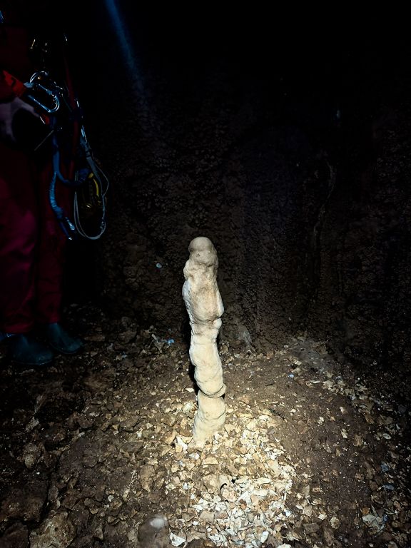 Vrijeme je za treću jamu, ime joj je "Izborna". Radi se o objektu koji je značajan za dalmatinsku speleološku scenu jer je označio kraj jedne ere i početak druge. A značajan je za biospeleologiju, odnosno naš Tonči ima neriješenih računa u toj jami. Dolazimo do najbliže točke dostupne automobilu, karta govori da do nje ima 800-tinjak metara hoda. Naprtivši se, idemo lagano, s noge na nogu. Sunce nas postojano grije, a grašci znoja skupljaju se. S obzirom da je to područje bilo zahvaćeno požarom put je solidan, ali ne zadugo. Dolazimo do dijela koji asocira na džunglu. Probijamo se kroz granje, šikaru, pokušavamo ne pasti nigdje i stižemo do jame. Mario nam govori priču o izgubljenoj "baji" (baja = životinja) u ovoj jami, kada su prvi puta ušli u ovu jamu naišli su na baju i taman što su ju htjeli uloviti i konzervirati, pobjegla je. Možda sam malo preozbiljno to shvatila pa sam aktivirala sva čula i sve što sam vidjela fotografirala. Mario ulazi i ulaz izgleda poprilično uzak, ali javlja da je u jami konop. Odlučuje da nećemo riskirati i koristiti ćemo svoj. Javlja da mogu krenuti, ali i da mogu koristiti i konop iz jame, u dobrom je stanju. Opcija jedan jest koristiti stari konop, vertikala i dolje si ili koristiti novo postavljeni konop sa čvorom po sredini. Kada smo u školi učili prelazak preko čvorova, ostao mi je sjećanju sa dva hematoma na ruci, zaključujem da iako sam već malo unaprijedila tehniku, i u konačnici i nakon toga prelazila preko čvorova, nema potrebe ako nije nužno, ima vremena. Spuštam se tako po starome konopu i stižem dolje, Pepera može krenuti. Jama je duboka 18 m. Dvorana na dnu je impresivna, puna ukrasa, ali ima još jedan prolaz i dvoranu koja tek ostavlja "bez daha". Gdje god pogledaš ukrasi, zavjese, stalagmiti, stalaktiti, svega ima. Ima i baja. Kaže Mario da kada se spustio da je žaba bila na dnu, ali je vrlo brzo pobjegla. U dvorani na dnu nalazi se i jedan stalagmit koji nas je sjetio na našu Anku, i da, naravno da smo se slikali kraj njega, sa njim, jedino nismo na njemu. :) Dok Pepera crta, Mario i ja sjedimo i razmišljam kako da ga pitam mogu li ja raspremiti kad li on postavlja to pitanje. Naravno da hoću! Hoću raspremiti! Pokazuje mi što da pripomenem Peperi za crtež i kreće van. Pepera dovršava i izlazi i on, mogu krenuti. Na vertikali po stijeni ima dosta crnih puževa. Izlazim i ja, a kakva nego li sretna. Nebitno kakva je jama i koliko je duboka, svaki odlazak u jamu naučim nešto novo, osjećam se sigurnije i u sebe i u opremu, spretnije ju koristim, ali i osjećaj je neopisiv. Osjećam se ispunjeno. Spremamo stvari, i ovoga puta pametnije, ostajemo u kordurama i tako ćemo se probijati kroz džunglicu.