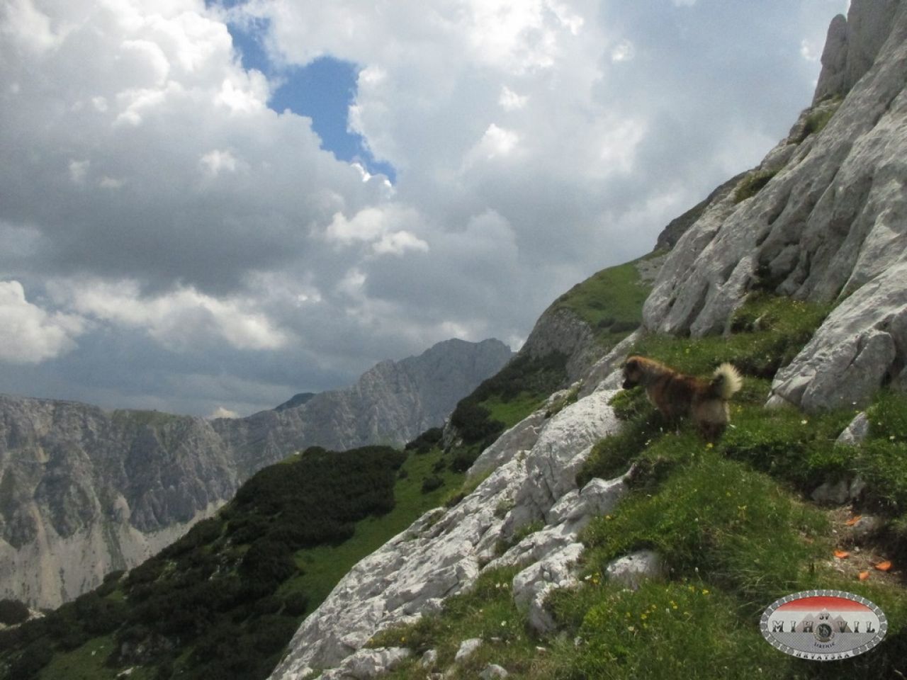 17.7. Na Prutašu nisam bila dugo. Nebom se mute oblaci, no, staza je kratka, iako strma. U katunu ispod Prutaša nema obitelji sa blagom, odustali su od ispaše. Zaobilazim korito, pojilo za životinje i strmom stazom uz rub izrezbarene, prutaste, stijene, nastavljam padinom. Uh, planinski poskok, žutokrug. Gledam za Totom, upravo ga je preskočio, ne, prekoračio. Nisam to nigdje pročitala, kako i zašto ne reagira na životinju. Ovo nije prvi put da Toto prekorači zmiju, bar deseti (ne mogu promijeniti bilo kakav ishod). Pomislih da je poskok mrtav. Zaobišla sam ga i krenula slikati a on se tada okrenuo i otpuzao u travu, dok mu je rep izlazio iz trave na stazu gdje sam vidjela da je veći nego sam mislila. Na ovoj stazi nema sajli za osiguranje ali ima kratkih, uskih staza uz ponor ( nisam to ranije zapazila), magla, kiša ili jak vjetar mogli bi otežati silazak. Ubrzala sam hod da preteknem maglu, u minutu. Žao mi je što nisam mogla duže uživati u prekrasnom pogledu. Dvaput je zagrmjelo kao opomena. Počela je kiša. Dolje, na početku staze vidjela sam rendžerov auto, stajao je dok se nisam niže spustila. Vjerojatno je čekao da se „tamo, neka baba“, spusti na sigurno. Nije zbog karte, već smo se sreli, imam godišnju kartu za sve NP CG, 13€. Ipak, hvala mu. Na povratku sam ostala noćiti u katunu ispod Sedla, kod Danijele. Uz toplo, tek pomuzeno mlijeko, kajmak i ugodan razgovor ljubazne planinke vratila sam slike jednog ili dva ljeta u djetinjstvu na Sinjajevini. Moja maštovita romantika se raspršila dok sam slušala plač janjaca i lavež pasa, životinja koje su spavale mokre i smrzle na vjetrometini i bez dovoljno hrane (psi), dok su kiša i vjetar ljuljali trošnu kolibu. Nisam odoljela nagonu da izađem vani sa lampom vidjeti zašto laju psi i trče ovce u toru. Ledila sam se ali nisam vidjela vuka, magla kao ledena paučina prekrila je krajolik. Psi su došli do mene a moj Toto je drhtao i nije se pomjerio sa praga kolibe. Blaženi život kućnih ljubimca.
