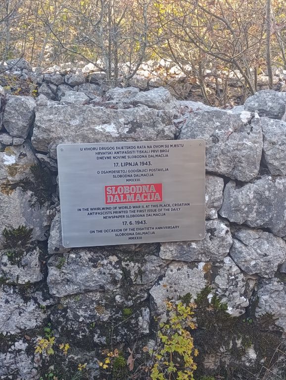 Nakon jedno 1.30 min vožnje stižemo do odredišta. Plan je bio preko Lugarnice prema Ljubljanu, prvi uspon je bio malo teži, jer pauza od planinarenja je ipak bila duga, ali brzo su noge uhvatile ritam. Na putu smo malo skrenuli s planirane rute, na Kolombov prijedlog da vidimo Štampariju svi smo znatiželjno krenuli za njim, puni očekivanja i razmišljanja…Štamparija na Mosoru, kako je to uopće moguće. Štamparija je mjesto gdje je 1943. tiskan prvi broj Slobodne Dalmacije u napuštenoj pastirskoj pojati na Mosoru 17. lipnja 1943. godine s podnaslovom "Dnevnik Jedinstvenog narodnooslobodilačkog fronta Dalmacije". Novine su tiskane u otežanim uvjetima s primitivnim sredstvima. Kad smo došli do Štamparije, postavljali smo pitanja kao osnovnoškolci željni znanja. Najljepše je na izletu kad naučiš nešto novo. Zatim smo se uputili prema Lugarnici, malo odmorili, pojeli, napili i naposljetku svlačili robu jer je bilo vruće kao usred ljeta. Nakon toga uslijedio je malo veći uspon prema Ljubljanu. Kad gledaš prema njemu pomisliš, uf tko će se popeti, daleko je. Našim vodičima je to uvijek, ajde još koji metar, 20 minuta…uvijek dobra taktika kojom nikad nitko ne odustaje.