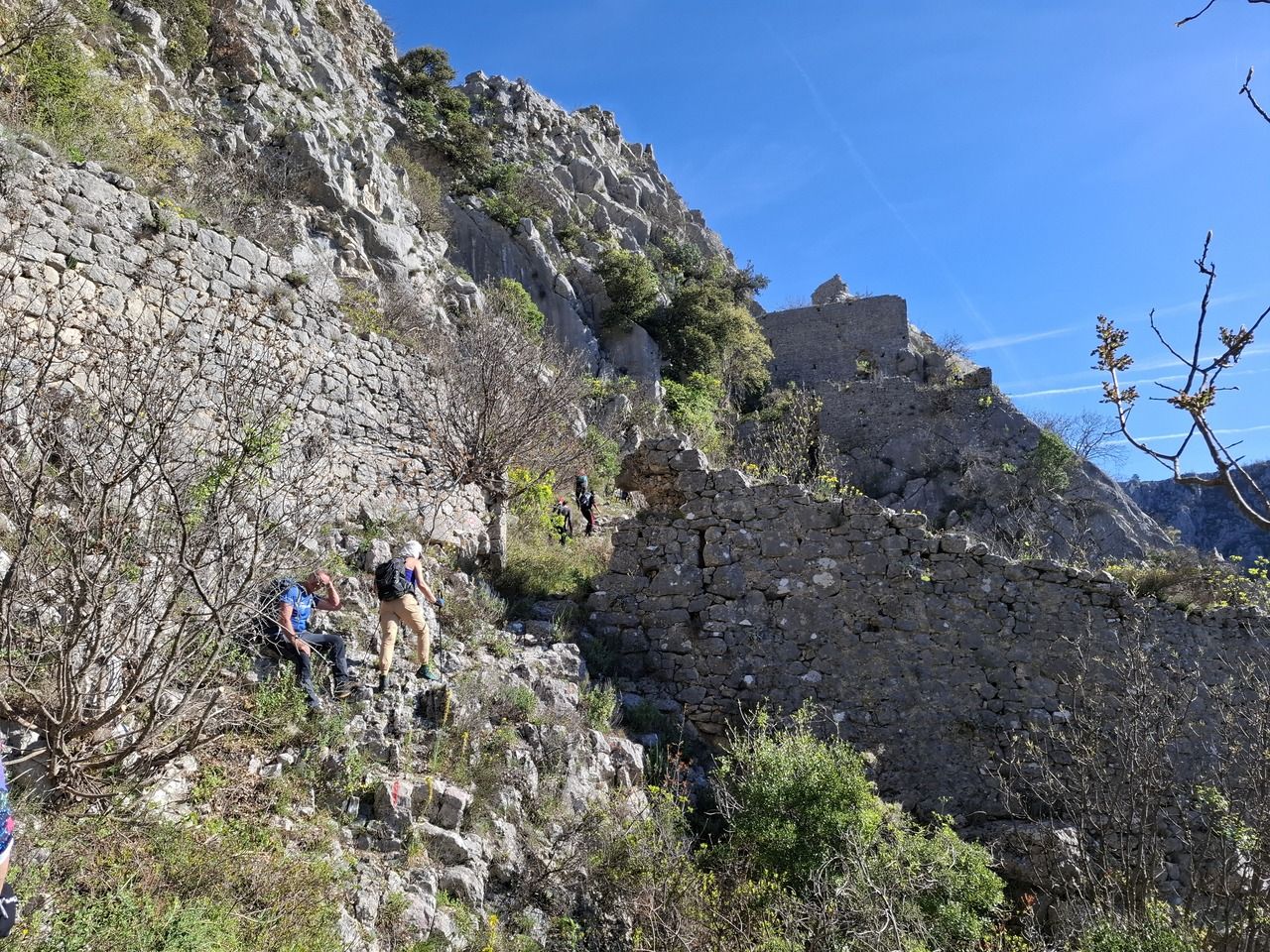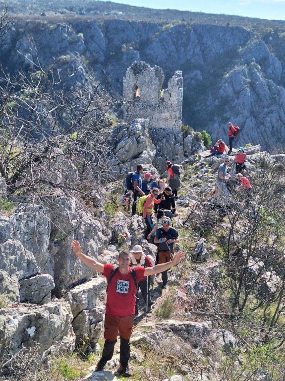 Pomalo se penjemo i penjemo i koraci postaju sve teži, a sunce se smije i grije, a kula na vrhu brda stoji i čeka. Ne smijem podigniti pogled jer mi se čini da je ta utvrda o'šla 'nebu pod oblake'. Teren je postajao sve grublji i strmiji, ali pogled sve impresivniji. Bome, pomagali smo se pri uspinjanju i nogama i rukama i sajlama i našim momcima. Ne traje to dugo, ali dovoljno da ostaneš bez daha i ovako i onako.