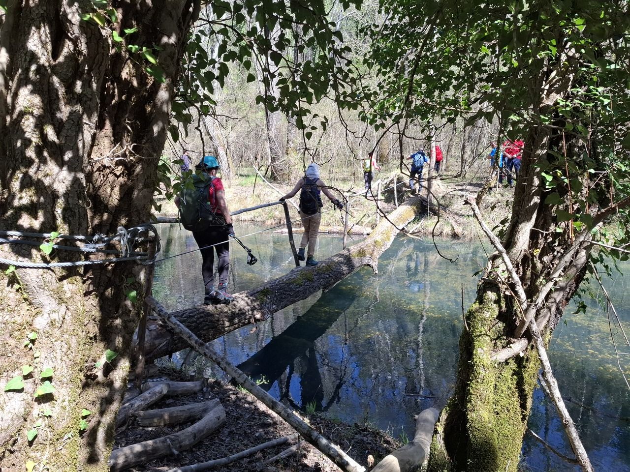 siđi do rijeke ... i sišli smo, a onda prijeđi preko rijeke i prešli smo i to preko 'brvna', polegnutog debelog debla sa priručnim držačima. Sve se ljuljalo, ali fotke su morale pasti pa makar obršili u rijeku koja te zove, mami da te osvježi poslije onih 100° gori-doli.