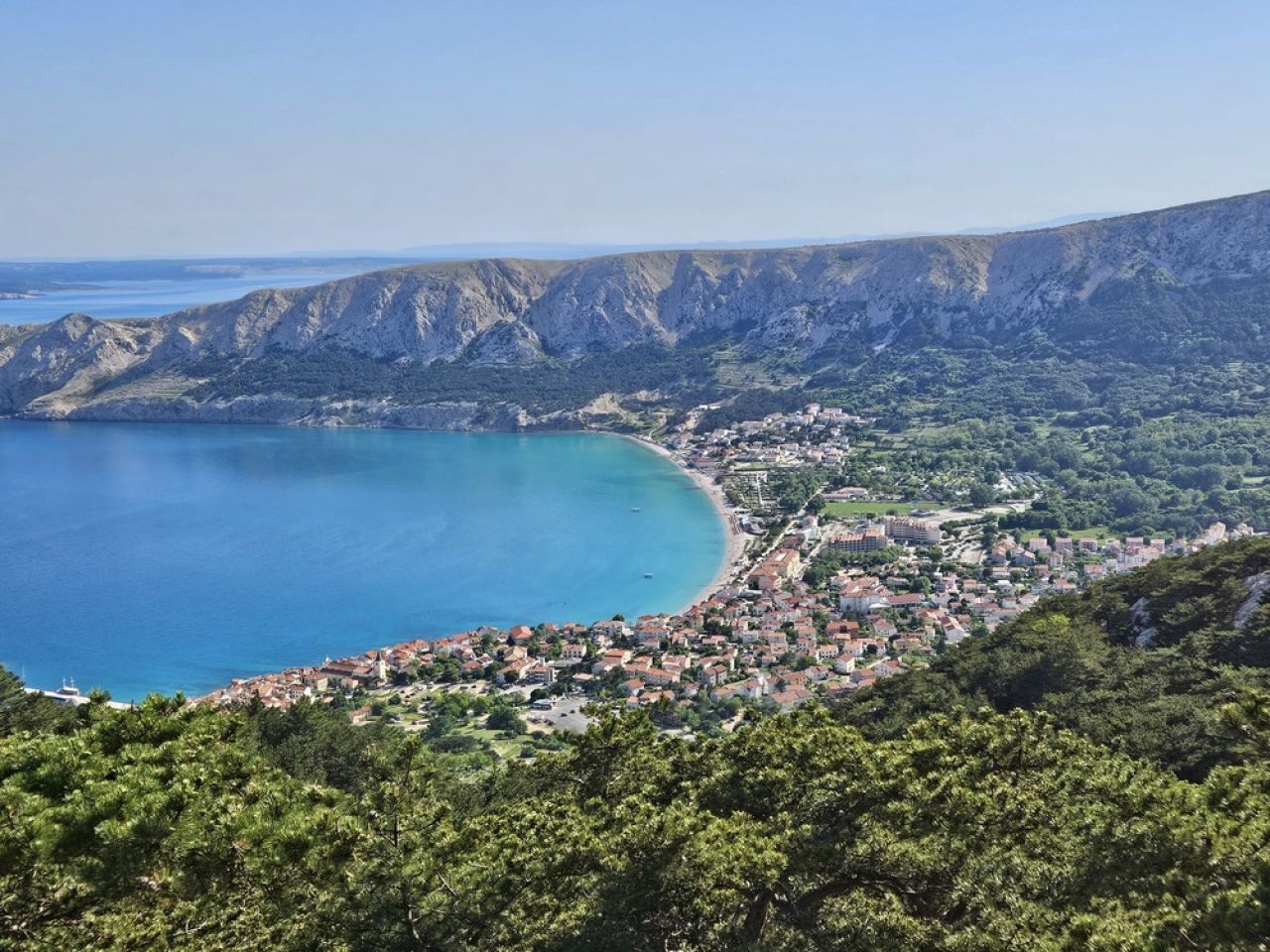 Nastavak puta vodio je kroz gustu borovu šumu, građenom šetnicom koja vijuga do vidikovca i vrha Stražica odakle puca nezaboravan pogled na Bašku, more i otoke. Predivan ugođaj.