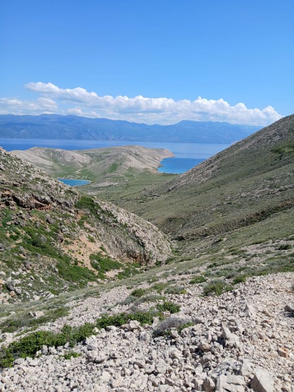 U taj surovi krš uvukle su se dvije tirkizno modre uvale koje nas mame, zovu, a strmo je, ali svejedno mi bi htjeli doli malo utočiti noge u more, izvaliti se na pijesku...i tako tooo...