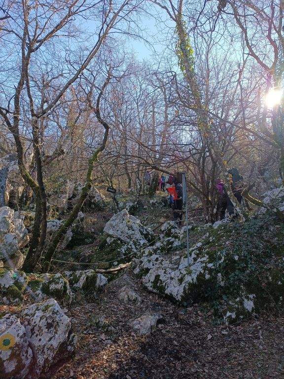 Nakon skupnog slikavanja dajemo upute o izletu, kretanju i trajanju - Jelena ozbiljna kako bi i trebalo biti kad se vodi tako puno ljudi, a ja neozbiljna jer me i malo manta temperatura, a i zbog ravnoteže u svemiru, da imamo od svega po malo. Izlet protiče u ugodnom ozračju i laganom tempu, ni brzom ni sporom. Ja na čelu kolone, a budući da malo slabije vidim, čitavo vrijeme imam pomoćnike koji mi viču 'markacija', a oni iza nas nekako love tempo nas najmlađih s početka.