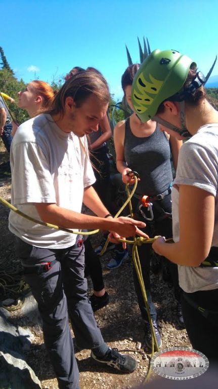 Sritni šta ne pada kiša, entuzijastično smo raspremili opremu, dok su asistenti postavljali smjerove. Ovo nam je bija prvi veći izazov, jer smo morali osiguravati jedni druge konopom na "krušku" te provjeriti jesu li naši penjači ispravno obukli opremu i vezali čvorove. Kao i prvi tjedan, opet je naglasak bija na sigurnosti, a da sve bude u redu pazilo je budno oko instruktora i asistenata.