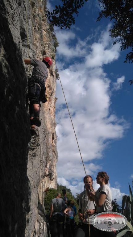 Idući dan vrime nas je odlično poslužilo te smo išli penjati na Marjan. Slijedilo je uživanje u lipom danu, pogledu na more i uspon prema vrhu uz primjenu znanja stečenih na predavanju o osiguravanju. Moram priznati da iz početka nisam imala povjerenja u sebe i bilo me strah, ali odlična ekipa je bila tu da te bodri ako negdi zapneš. Bilo mi je u glavi da P.A.O. ne znači penjačko-alpinistički odsjek, već pao, pada i pasti ćete sa stijene. No to se ipak nije dogodilo jer je sve bilo prilično sigurno, a i tu su bile spretne ruke instruktora i asistenata, te sam se brzo oslobodila od straha. :)