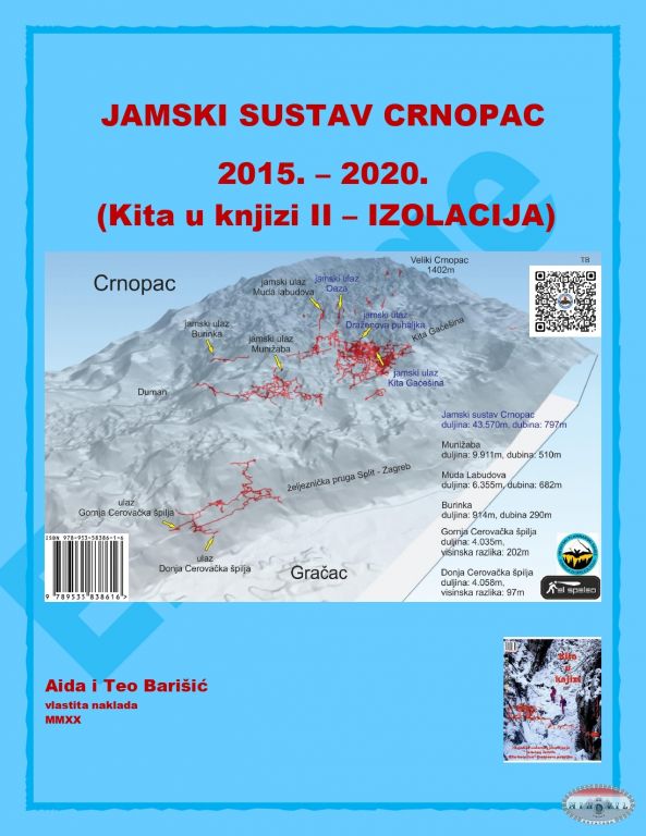 Naši članovi, Aida i Teo Barišić, nakon pet godina od prve knjige, opet su prikupili na 353 stranice brojne tekstove, članke, hibridne nacrte, kronologiju i dr. nastale tijekom ovog najsloženijeg istraživanja u povijesti hrvatske speleologije koje traje i dalje, u pdf-u on line izdanje Jamski sustav Crnopac 2015-2020 (Kita u knjizi II – Izolacija) - klik i preuzmi ili samo čitaj