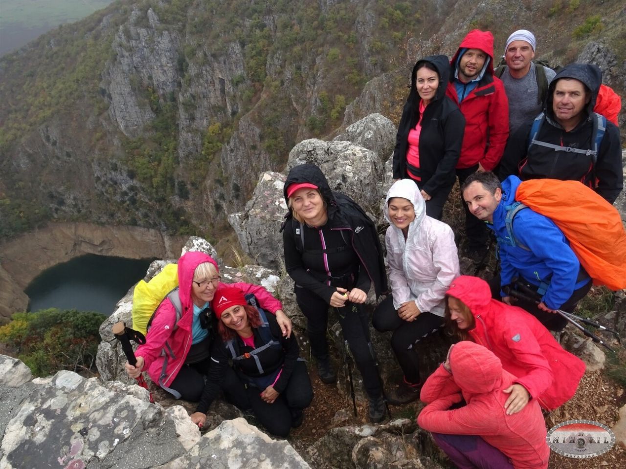 Idemo i do Modrog i Crvenog jezera koji su uz sam Imotski. Na momente nas zafrkava jača kiša, ali je ipak milosrdno stala kad smo krenuli sići u presušeno Modro jezero - ono inače ne presušuje svake godine, zadnji put je presušilo prije tri godine, pa opet ove. Do dna vodi uređena staza. Odozgo izgleda ko da silazak i neće biti atraktivan, ali kako sve više silazite, sve vas više fasciniraju zanimljive crne stijene i klisure - ako ste u mogućnosti svakako siđite, prekrasno je. Kad jezero presuši lokalci ovdje igraju utakmicu Vukodlaka i Vilenjaka - u našoj verziji meč je bio između Vukodlaka i Vila. Odlazimo i do Crvenog jezera - u njega se ne može stići, ali oko njega vodi staza za koju nažalost danas nismo imali vremena. Ime je dobilo po impresivnim crvenim liticama koje ga okružuju.