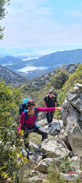 Nakon 4 i po sata hoda, popele smo Sv. Iliju...Vrh je zanimljiv, a ručak sa pogledom na Baćinu, Ploče i more je neodoljiv. Zasluženo izležavanje i lagani pokret prema Sv. Paškalu. Za spojiti ta dva vrha nam je trebalo oko uru vrimena. Marka nam je sve do tu bila vrlo dobra, ali onda krećemo raditi kružno povratak i tu nailazimo na lagane probleme sa markom...po karti trebamo pratiti trag VA, ali kako je ona markirana nekim sprejom koji je već izblidija, ne znamo na momente je li marka ili je lišaj na kamenu...da nije bilo Tininog iskustva sa praćenjem različitih vrsta karata, ne znam kako bi se baš snašle. Teren je surov biokovski, za tren završiš u bodljikavom grmlju te izbrazdanim stijenama na koje se baš i ne bi bilo lipo izvaliti.