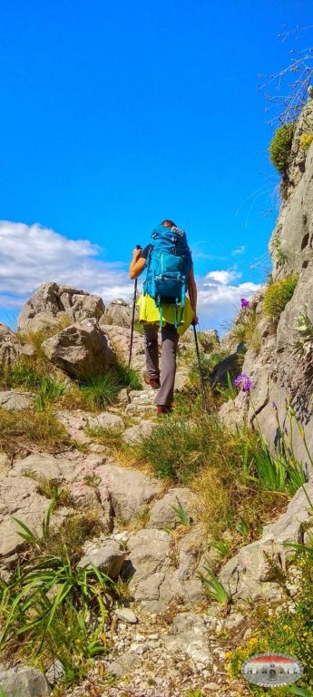Staza je idilična, serpentinasta, podzidana, a na njoj samo žuto cviće. Dolaskom na greben kreće za mene ono najlipše šta Biokovo može ponuditi...hrpa golemih kamenja. Taj dan ka za dišpet vrime je odlučilo biti najlipše ikad...imala sam osjećaj da sve promatram ka kroz neke filtere di su boje turbo nabrijane i umjetne...Majka Priroda je zbilja bila blagonaklona prema nama i toga smo baš bile svjesne