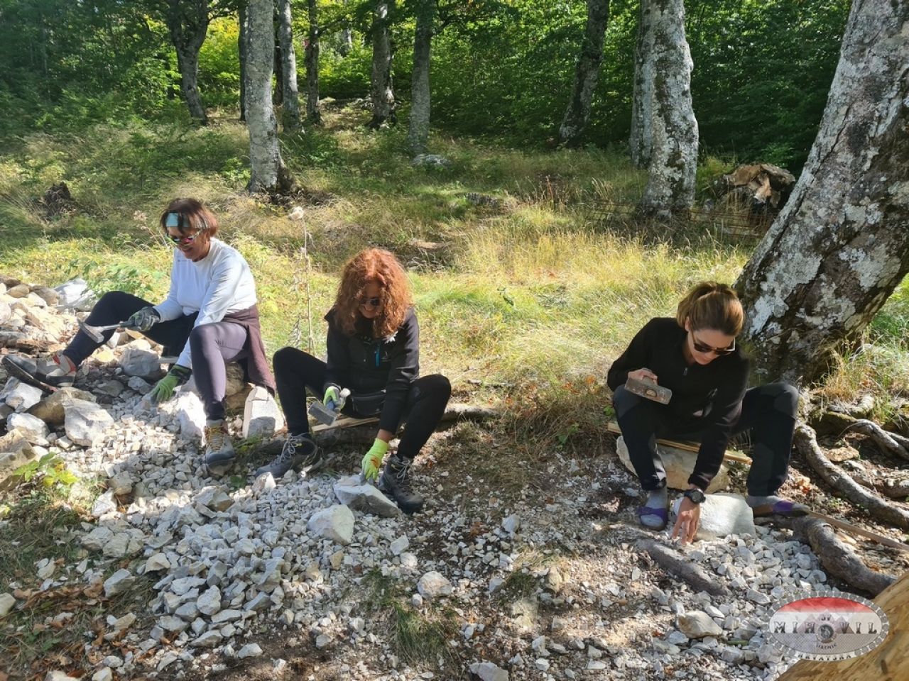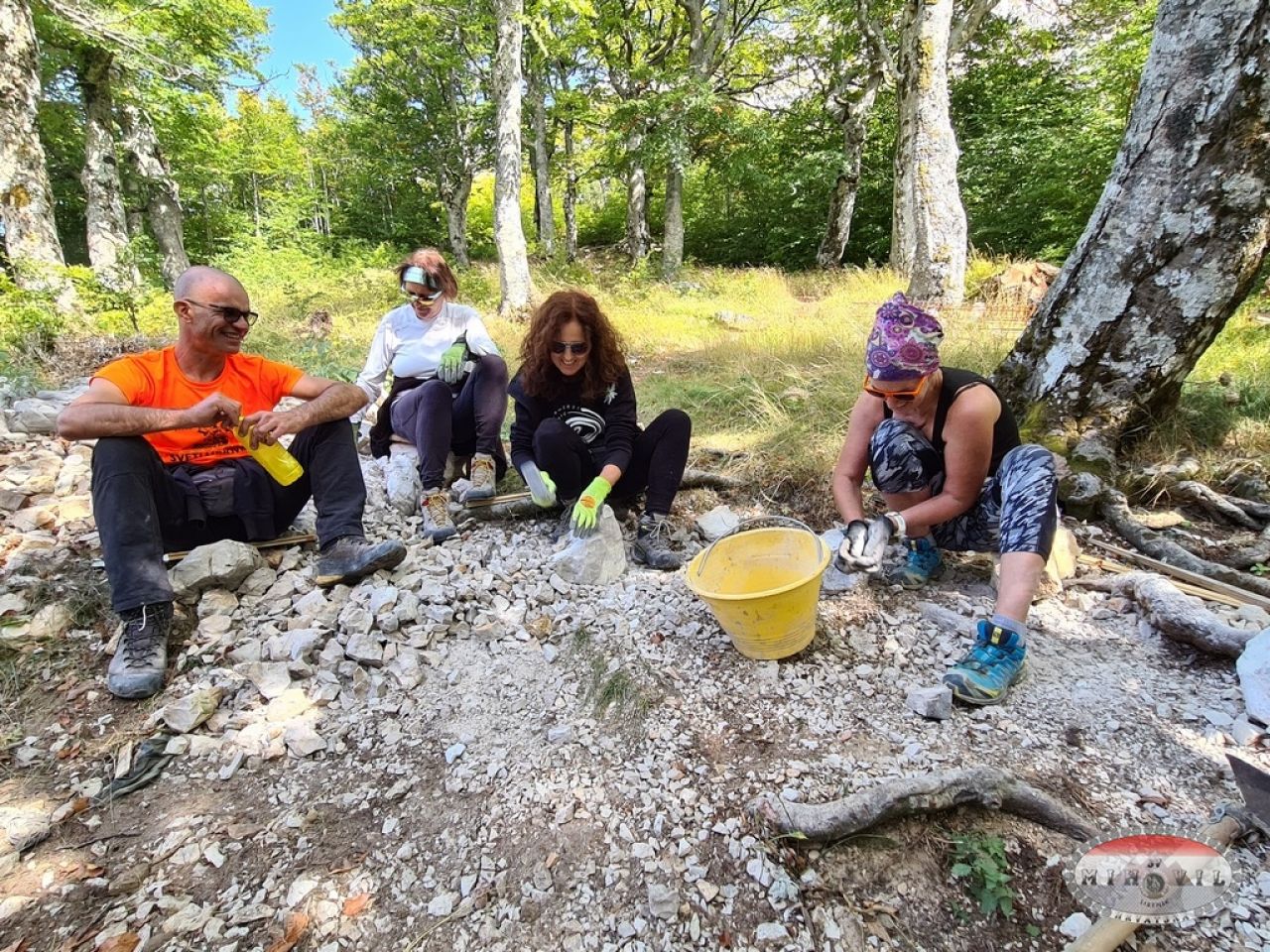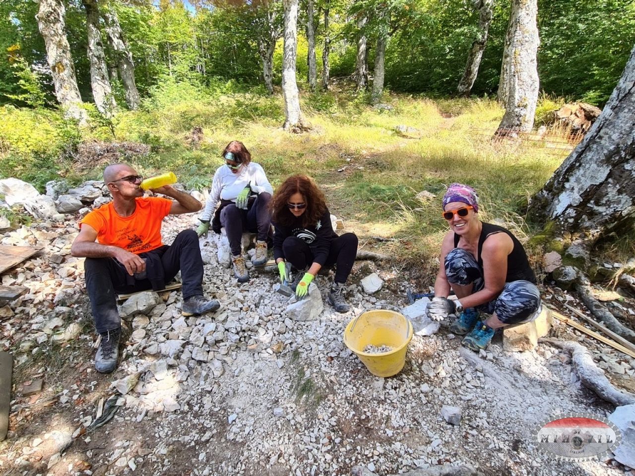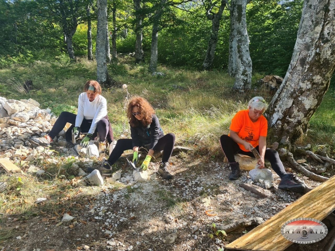 A prezidente od Mate naslonjen ležerno na zid, s prigodnim ukrasom od ožujske, nakon cjelodnevnih kopanja ostataka s kule na Krki, u raspoloženju prosječnog gastarbajtera, nešto mumlja: “ ...ma tribalo bi na sklonište, nešto ziđati.. triba ljudi, ajmo, ko će?..“ Zbog mojih maslina, koje nisu djevičanske pa ih nisam još obrala, propuštam ovaj izlet, predivnu Čvrsnicu i hajdučka vrata, ali slušajući Matu mislim se kako do sada nisam bila na radnim akcijama, pa se prijavljujem, jer moja dijagnoza hiperaktivnosti uz napadaje radoznalosti ne da mi mira. „Evo Mate, ja imam iskustva na mišalici, idem i ja, piši i mene“! A da me nije shvatio ozbiljno pokazalo se nakon par dana, jer pozivom na njegov broj nisam dobila potvrdu rezervacije sjedala u kombiju. Pa se ti Dodo slikaj, odnosno snađi.