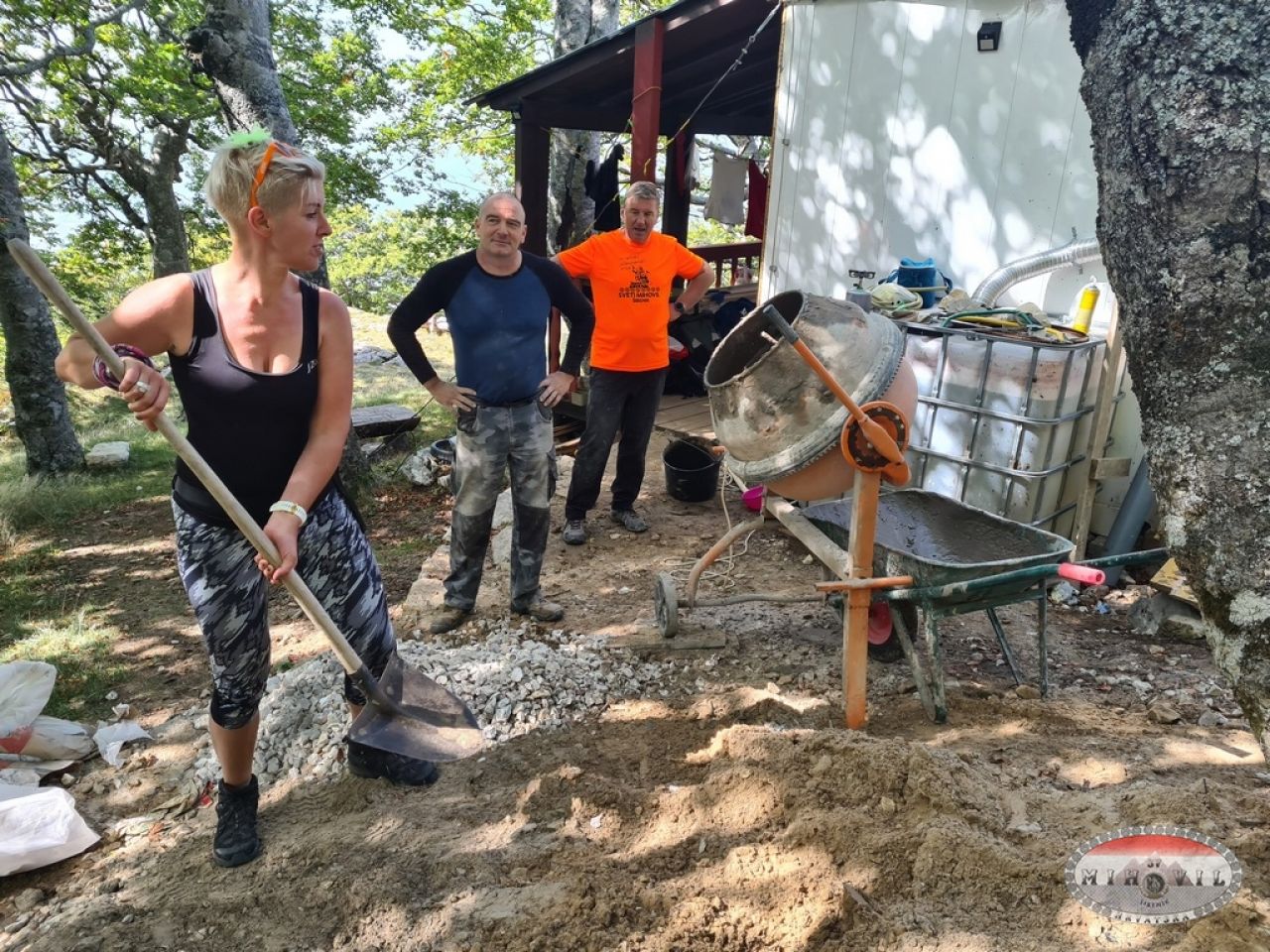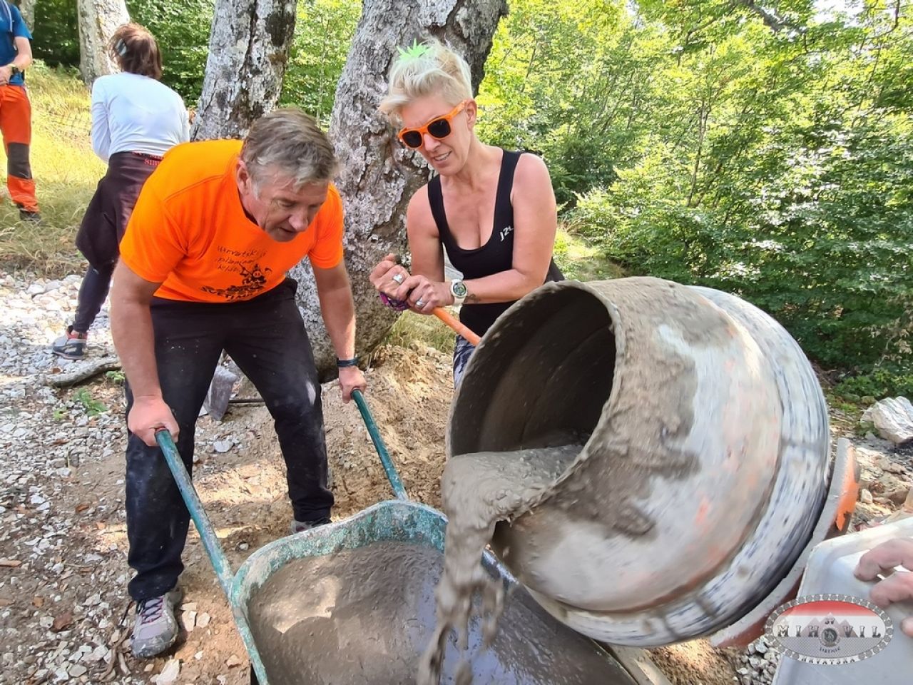 Ako možete vizualizirati sliku na 1500 mnv ona izgleda ovako: bez nadzornika na gradilištu, poslovi su se bez prevelike organizacije prirodno podijelili. Ekipa vještija stolariji postavlja drvene oplate na sklonište, druga grupa roštilja, treća čisti sklonište, a četvrta je na građevinskim radovima oko bunara. Možda me Bunar na turskoj granici našeg Aralice gurnuo u tu skupinu, a možda samo ego, da dokažem Mati da mogu. I eto mene u građevinskom sektoru. Dobri i nevjerni Tome me gleda u čudu i prepušta lopatu bez razmišljanja. I eto, hvatam ja lopatu i mišalicu za „ruku“ i ajmo. Smijeh i ruganje nadglašava buku agregata. Raspoloženje raste ko dim s roštilja koji se spremao za vrijedne ruke. Mate je meštar na bunaru, šaluje, baca maltu i špatulom gura da ne ostane šupljina. Kad smo ovako složni ide to brzo. A kad te ide, onda ti i ambicije rastu. „Ajde mišajte evo ćemo i krunu napraviti“, viče Mate. Žurimo, brzo će noć, skratio dan. I stvarno, bunar pomalo dobiva onu formu tipičnog bunara s krunom. Anka je nakon čaše rakije shvatila da nema nadzornika na gradilištu pa je počela držati govor i komentirati meštra. A on mrtav - hladan.
