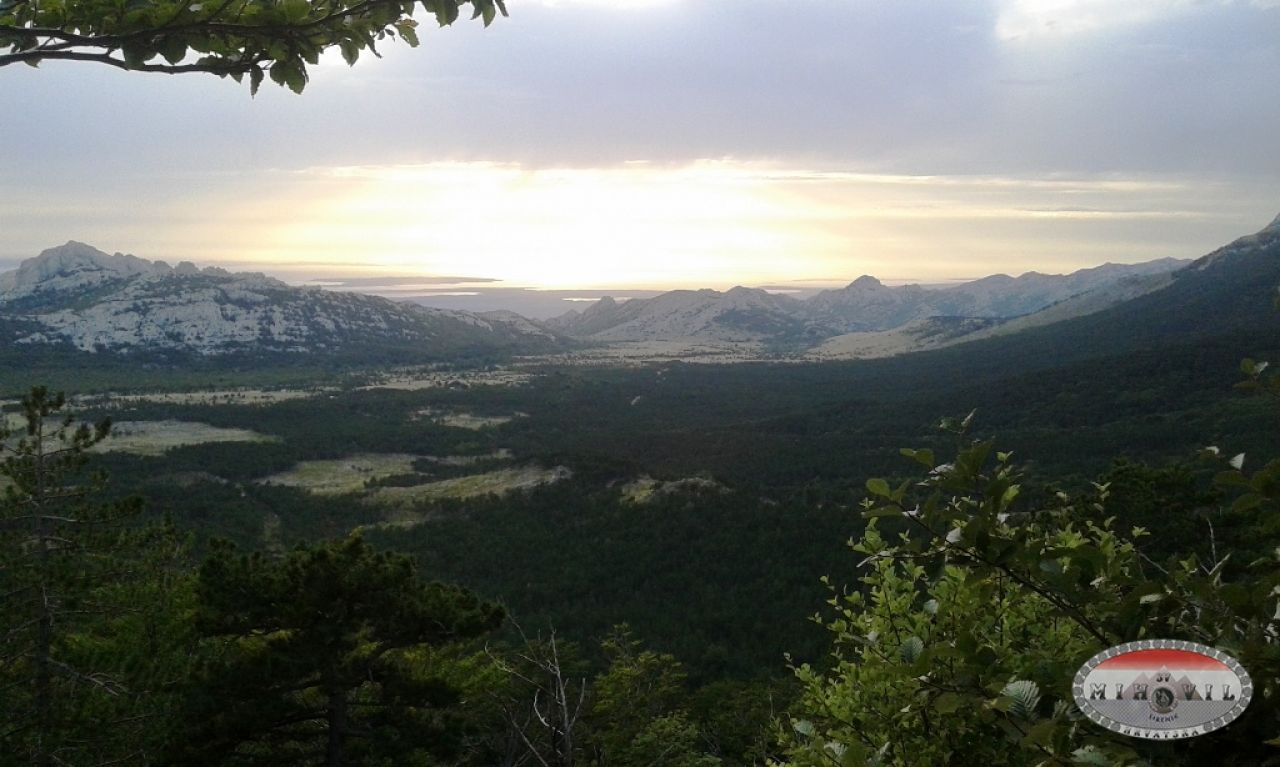 Prolazili smo kroz prekrasnu šumu, na prvom vidikovcu smo gledali predivan zalazak sunca, ponovo šuma, mirisi, pogled na kanjon Paklenice , u daljini Sveto brdo. Ah….