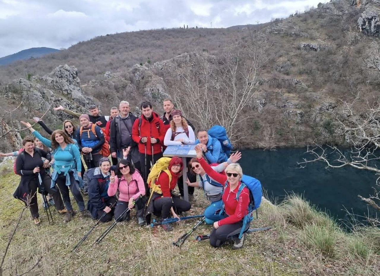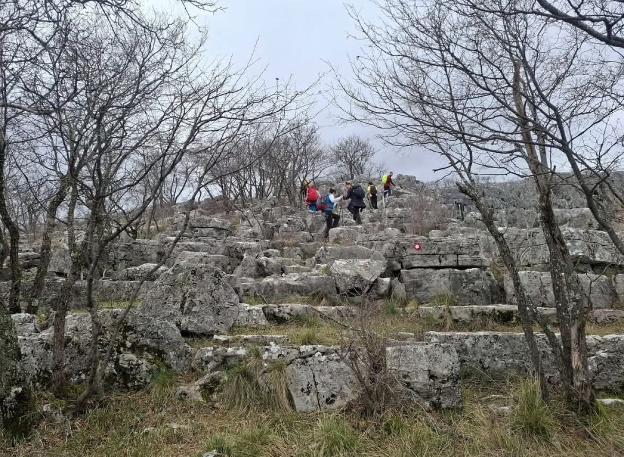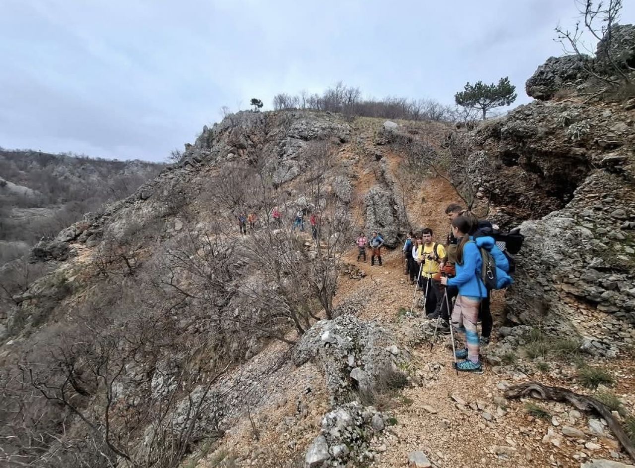 Kroz nedavnom kišom ovlaženo tlo spustili smo se do prvog i najvećeg Lokvičićkog jezera - Galipovca, na čijim strmim obroncima je većina nas uočila i obitelj divokoza, a nakon toga do Mamića jezera i Knezovića jezera. Posebna su po tome što su to krška jezera, do njih nema pristupa jer se nalaze duboko u krškim oknima, te se s njihovih rubova strmoglavljuje pogled na njihovu vodu, koja nikad ne presušuje. Većinom izleta ispresijecali su se naizmjenično usponi sa silascima. Jezero Galipovac okružuje po svom cijelom rubu planinarska staza, što smo iskoristili za povratak na početnu točku staze, ali smo prije toga iznad njega obavili najbolji dio svakog izleta - uzeli pauzu za marendu, s pogledom koji oduzima dah. Zadnju dionicu smo se spustili u vrtaču, pa se iz nje penjali intezivnim usponom do spasonosnog asfalta.