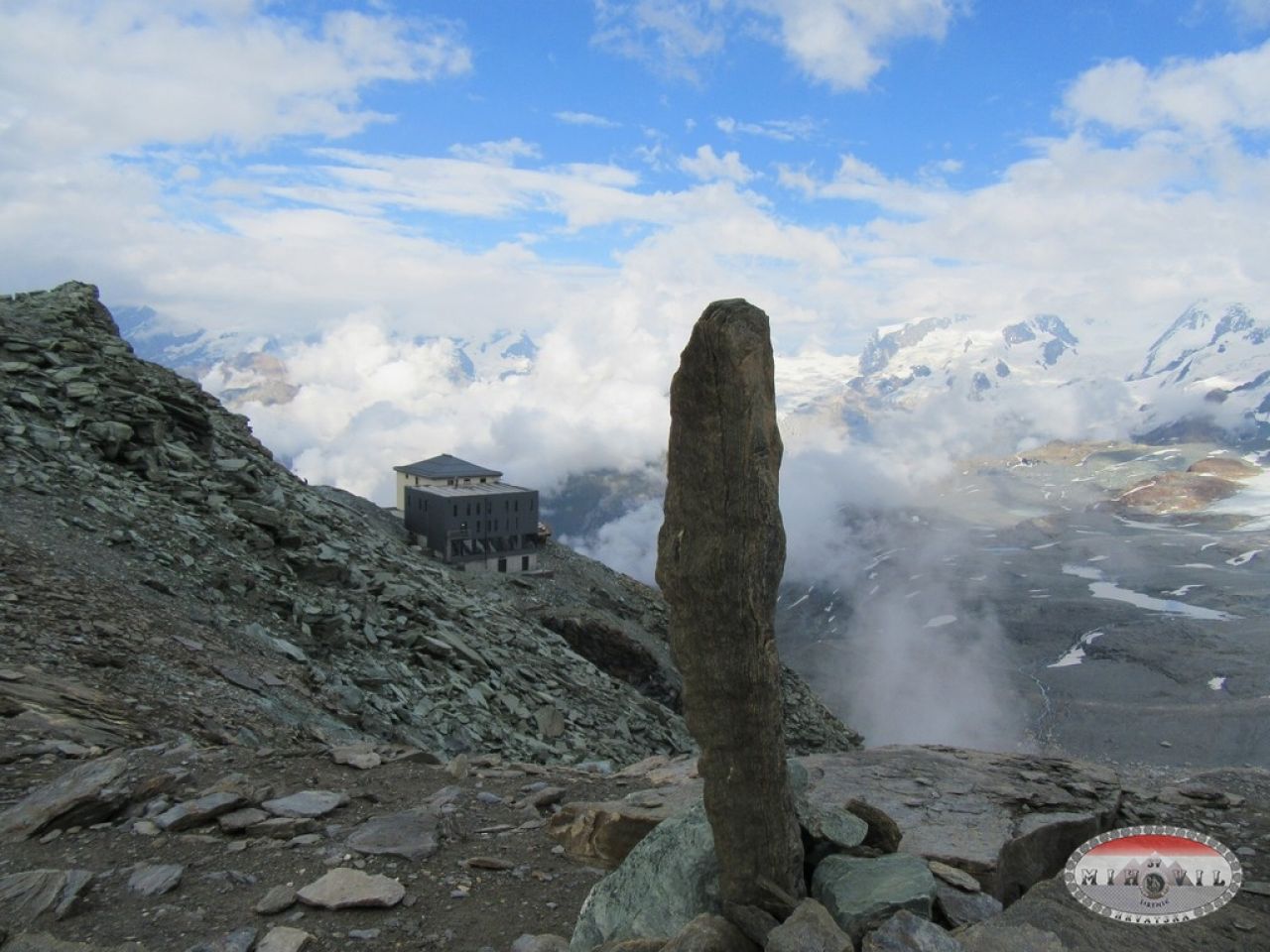 Ipak spavamo dobro. Sutradan ostavljamo auto na parkingu kod našeg čovjeka iz Slavonije i idemo do doma Hörnlihütte na 3260 m, pa zato i ne brinemo toliko za uspon. Nakon vlakića na kraju Zermatta sjedamo na žičaru i vozimo se do zadnje stanice. Iako je kraj srpnja, ljudi nose skije i idu na padine Monte Rossa uživati, a mi sa svojim teškim natrpanim ruksacima dva sata uspona do doma. Vrijeme koje je najveći uzrok nesreća na ovoj planini je loše, vrh je obučen u crni oblak, oko njega grmi i sijeva, pada ledena kiša i snježić. Pomislim dobro je, možda ovako i ostane pa sutra i ne idemo gore, a onda onaj drugi poriv u meni moli boga da ovo prođe i da osvane vedar dan.
