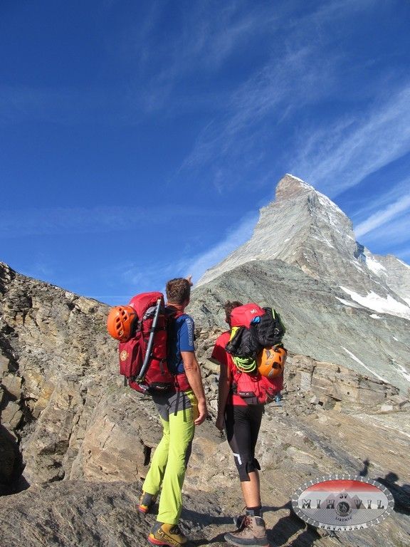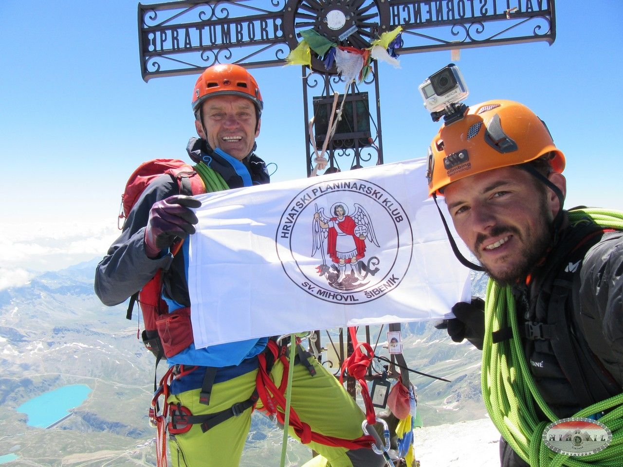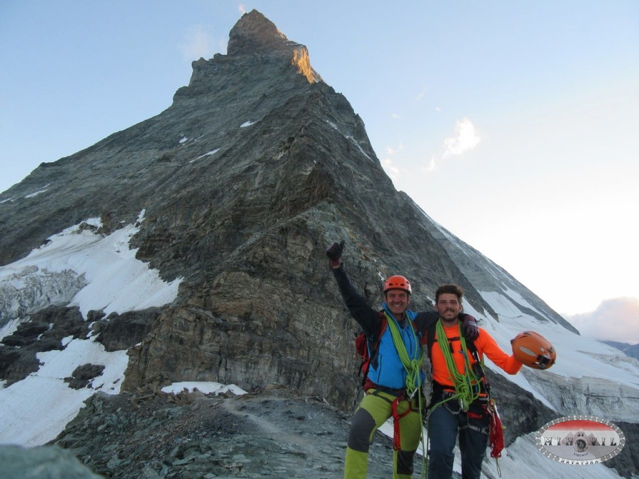 Vidno umorni, istrošeni skoro do krajnjih granica, bacamo ruksake sa sebe, ja čak skidam sve do mudanata, jer sam prokuhao kao Fićo uzbrdo. Razum govori „dosta je“, spremam se to reći Luki, ali nakon okrijepe, malo pancete, čokoladica i voda, oblačimo opremu na sebe i idemo dalje. Slijedi najteži dio uspona, ali sad smo na 4000 mnv i još ima debelo dana, tek je devet sati i nema odustajanja. Penjemo metar po metar, teško se navlačeći rukama, stijena je kao zid, pomisliš da ne možeš ni popeti, a onda nađeš neki zubić, zakačiš se i navučeš gore. Naravno, ako ne uspiješ odletjet ćeš dolje 1000 metara niz provaliju do samog podnožja i odvući kolegu za sobom. Luka je jedina osoba u koju sam vjerovao da to možemo izvući, i snagom volje i nadljudskim naporima više se ne gubeći iz smjera, riskirajući život svakog metra 1200 puta, u 13:30 izbijamo na vrh Matterhorna.