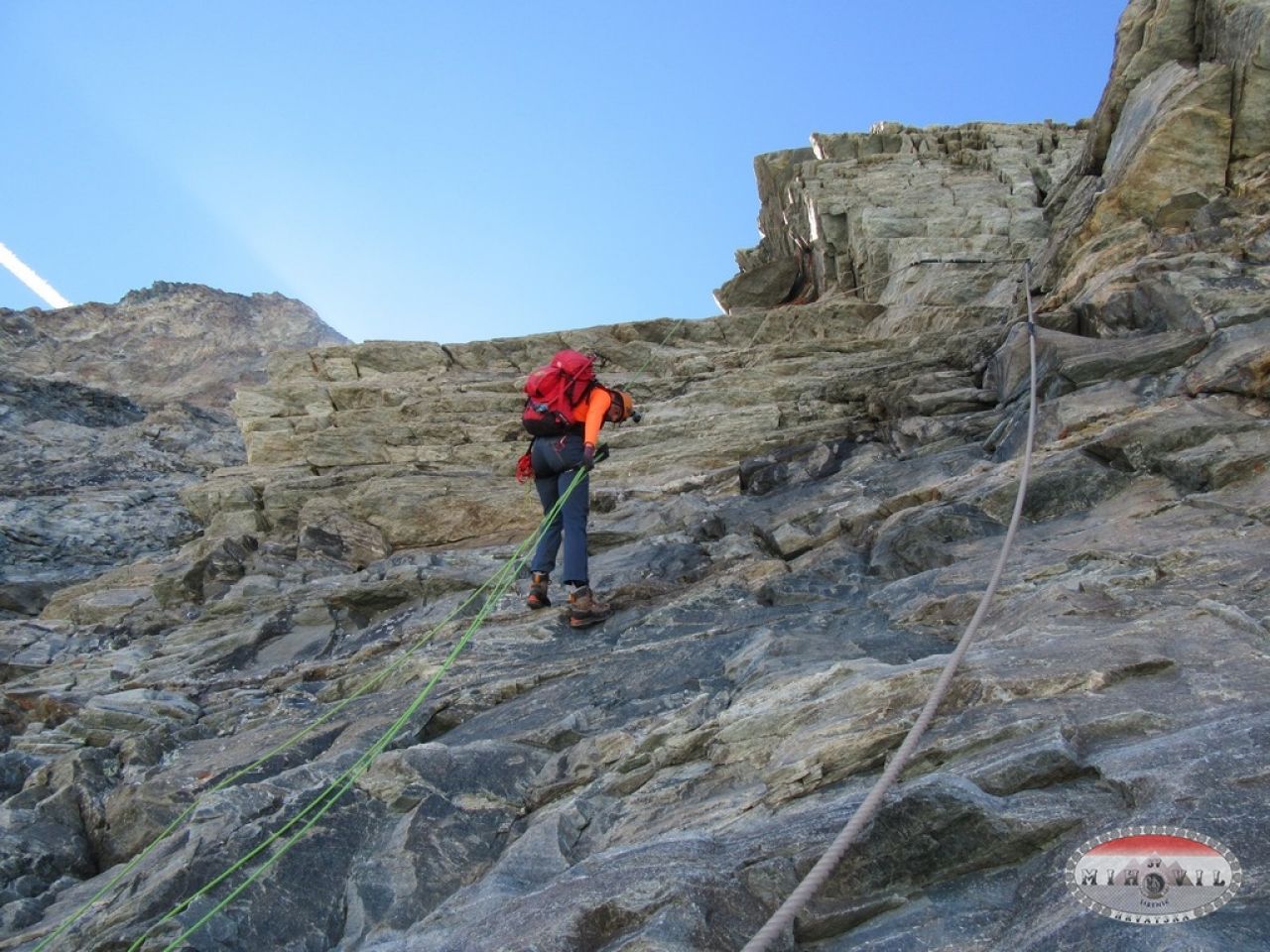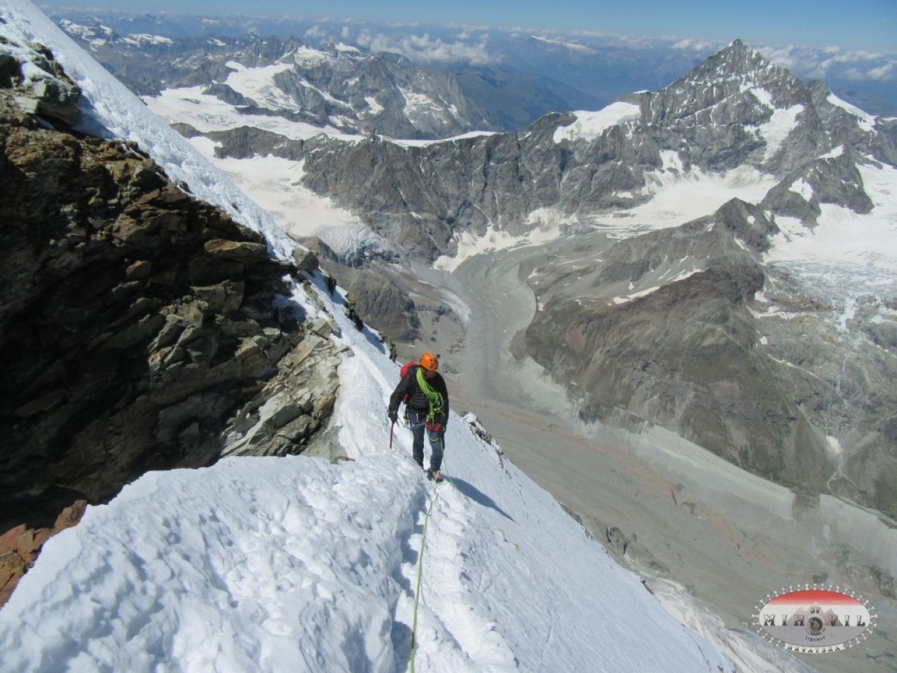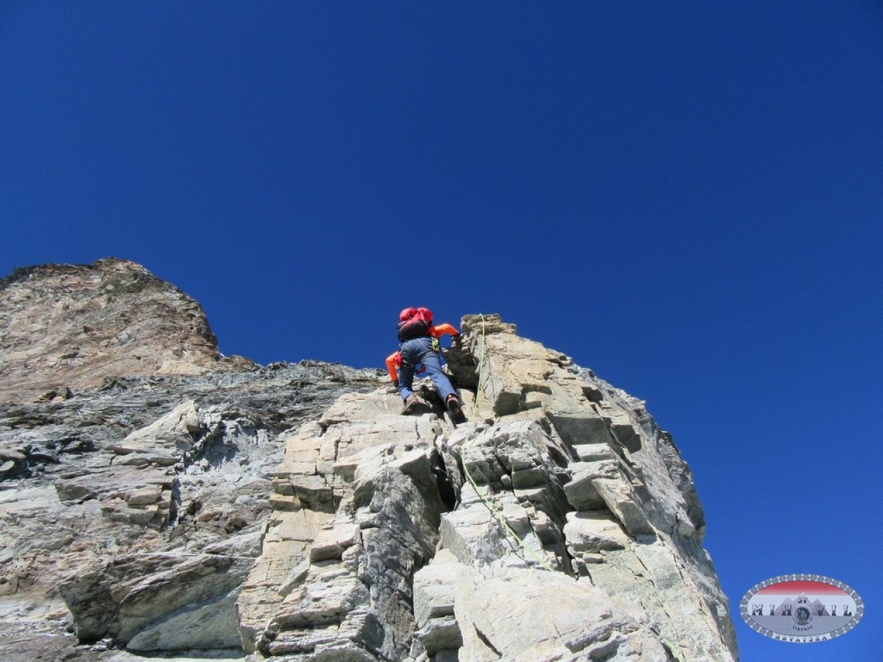 Vidno umorni, istrošeni skoro do krajnjih granica, bacamo ruksake sa sebe, ja čak skidam sve do mudanata, jer sam prokuhao kao Fićo uzbrdo. Razum govori „dosta je“, spremam se to reći Luki, ali nakon okrijepe, malo pancete, čokoladica i voda, oblačimo opremu na sebe i idemo dalje. Slijedi najteži dio uspona, ali sad smo na 4000 mnv i još ima debelo dana, tek je devet sati i nema odustajanja. Penjemo metar po metar, teško se navlačeći rukama, stijena je kao zid, pomisliš da ne možeš ni popeti, a onda nađeš neki zubić, zakačiš se i navučeš gore. Naravno, ako ne uspiješ odletjet ćeš dolje 1000 metara niz provaliju do samog podnožja i odvući kolegu za sobom. Luka je jedina osoba u koju sam vjerovao da to možemo izvući, i snagom volje i nadljudskim naporima više se ne gubeći iz smjera, riskirajući život svakog metra 1200 puta, u 13:30 izbijamo na vrh Matterhorna.