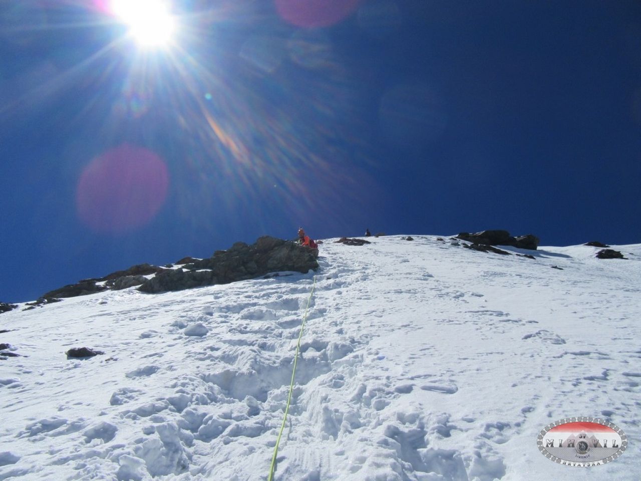 Kao po nekoj šemi na ovakve uspone se kreće oko 4 sata ujutro. Vodiči vežu svoje klijente i kao ovce ih vuku do vrha. Tako smo i mi već u 4 brzo bili spremni, ali kao po nekom tajnom dogovoru svi su nam već utekli, vidimo tikice već visoko u stijeni. Još sam se čudio Ameru koji je hrkao i prevrćao cijelu noć, gdje će on već u tri sata ujutro, ali to je politika vodiča koji ne vole nas solo penjače koji nismo spremni platiti 1500 eura da nas vuku gore, pa čak prave i zamke po smjerovima da se izgubiš u labirintu stijena i kamenih gromada. Nama se to dogodilo već nakon pola sata uspona, pa još puno puta, tako da do skloništa stižemo za 4 ipo sata, često se dižući, spuštajući, opasno priječeći tražeći pravi smjer.