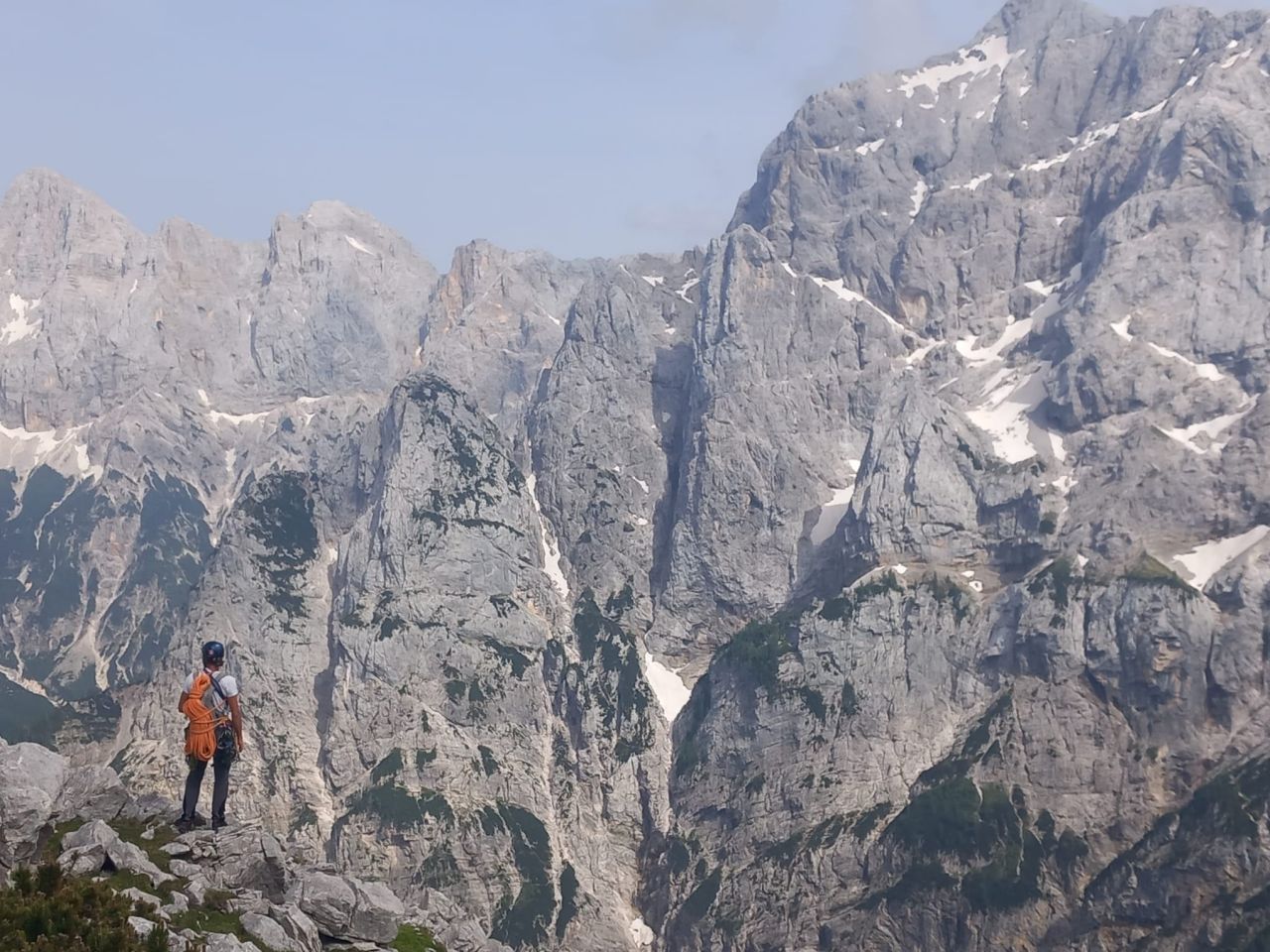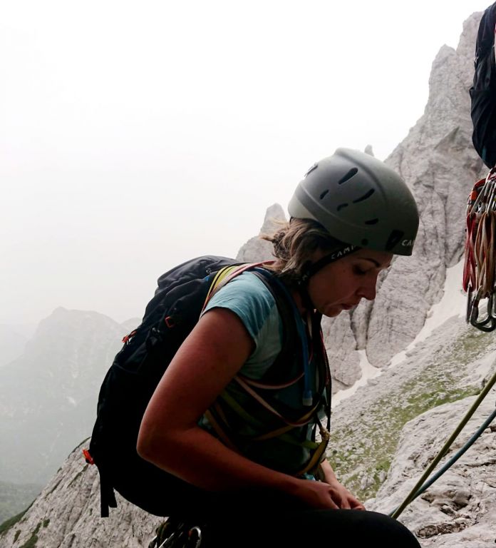 Postavljam prvu dužinu i dolazim do dijela di bi mi baš trebao sad jedan zabijeni klin da se osjećam sigurnije... kad ono.. nigdje mjesto za zabiti ni klin ni bilo koje drugo međuosiguranje. Uhvatim rukom dio stijene, a ona mi se mrvi i ostaje u ruci.. uff..prvo buđenje u zoru, pakiranje opreme na brzinu jer su svi spremni, pa pristupni marš, pa prelazak snježišta u ljetnim pristupnim, penjanje alpskog smjera kao prva, a nije još niti 11 h..dosta izazova za jedan četvrtak...što je, tu je Luce, nazad nema..i nekako se skuliram, pogledam malo bolje kako ću se namjestiti i krenuti..i naravno, uspila sam. Ta situacija je stvarno bila velika stvar za mene..izlaženje iz neke svoje rekla bi komfor-safety zone.