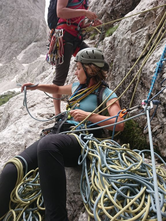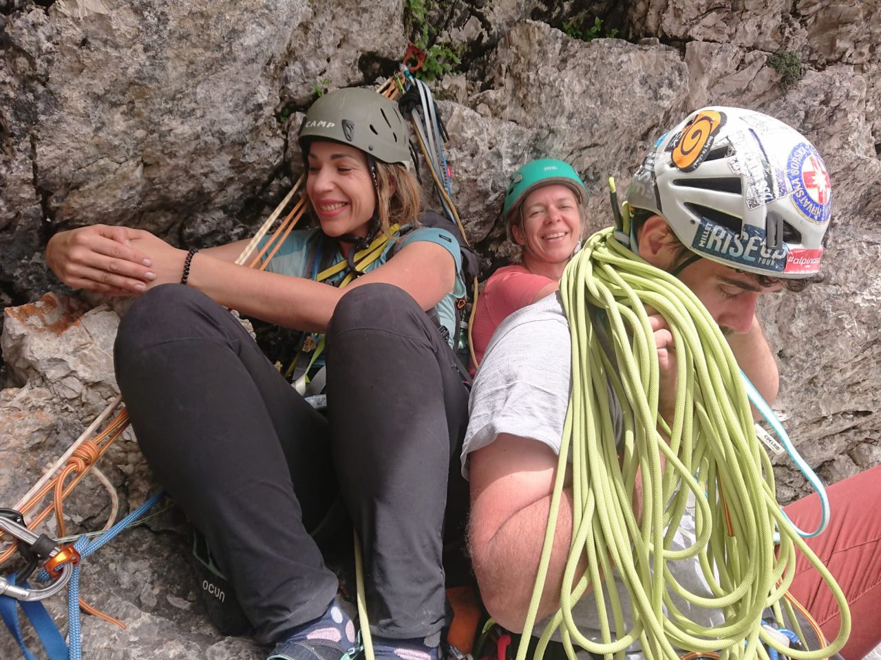 U subotu nas je čekala još jedna rampa, ovaj put Orientale u stijeni Vetta Bella. Obzirom da je bilo dosta odrona i kamenja iz drugih smjerova koje smo uspješno uspjele izbjeći, naše mamite (Ivona i Tea) su ispravno donijele odluku i napravile sve da obje naveze u tom smjeru sigurno abseilaju.