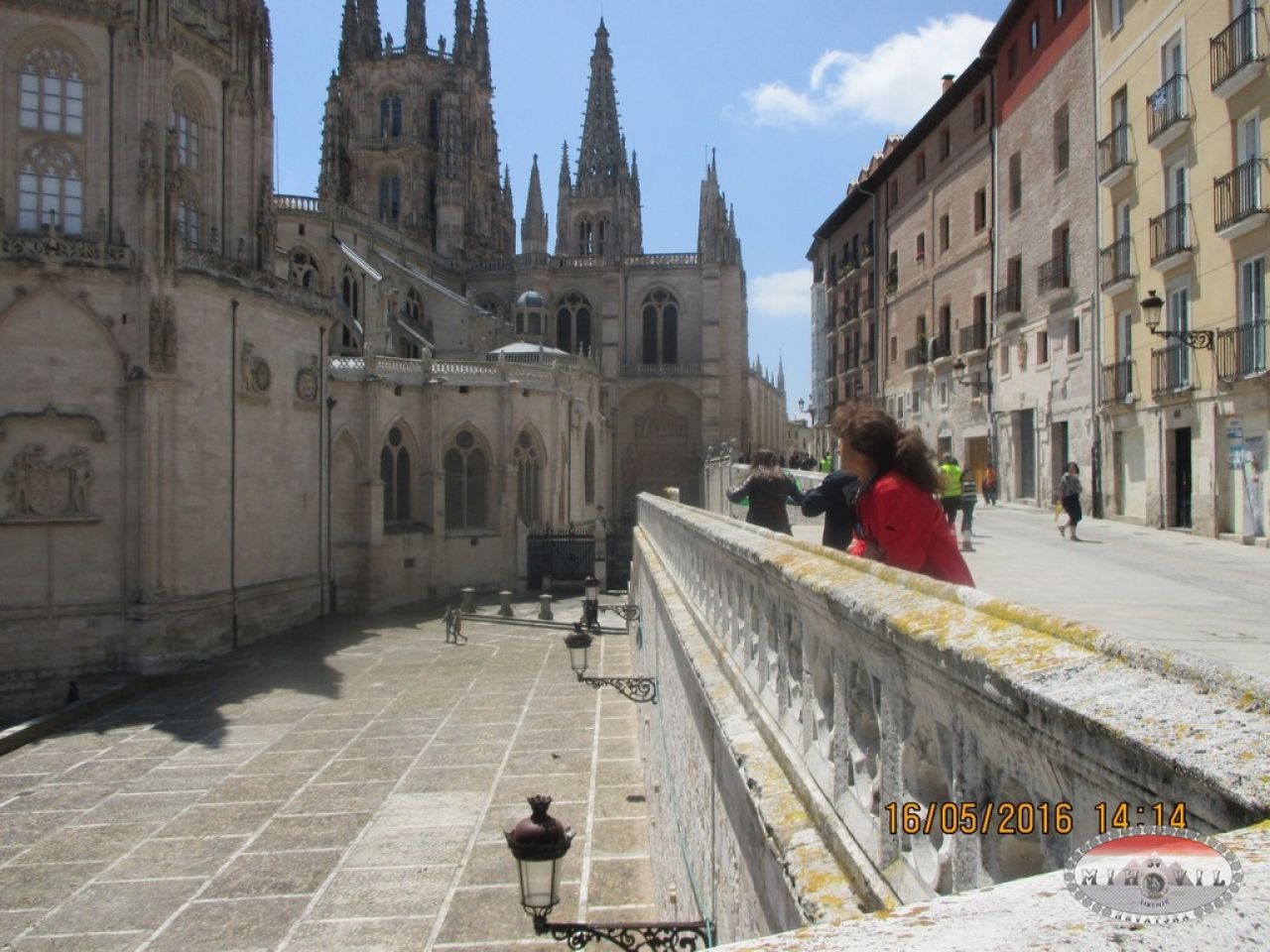 Albergue u Burgesu je moderan, novo uređen a svega par eura. Zbog loših kritika ranijih putnika evo i adresa: „Casa de los Cubos „ C/ Fernan Gonzales 28, Albergue Municipal, tik do velikog zdanja Katedrale Burgos. (Iz Burgosa ima autobus do aerodroma u Madridu.) Kratko sam prošetala gradom. Spomenik viteza, El Cida na konju dominira bulevarom. A malo dalje ogroman brončani bik. Burgos ima burnu povijest od utemeljenja 884 god. ( Uz velike bolove ) Ušla sam u muzej Katedrale Burgos, pravo posjeta se dobije nakon kupnje u suvenirnici u prizemlju katedrale. Katedrala se počela graditi 1221 god. i jedna je od najljepših srednjovjekovnih, monumentalnih građevina uopće. Bogatstvo i ljepota kao i veličina unutrašnjosti katedrale ne mogu se ni zamisliti. Iznova sam se zahvalila Bogu i Sv. Jakovu što sam doživjela vidjeti ovaj sveti dom. Ujutro, 17.5.2016. sam krenula suprotno od pelegrinosa, uz veliku bol u grudima koja još traje, kao i čarolija Camina.