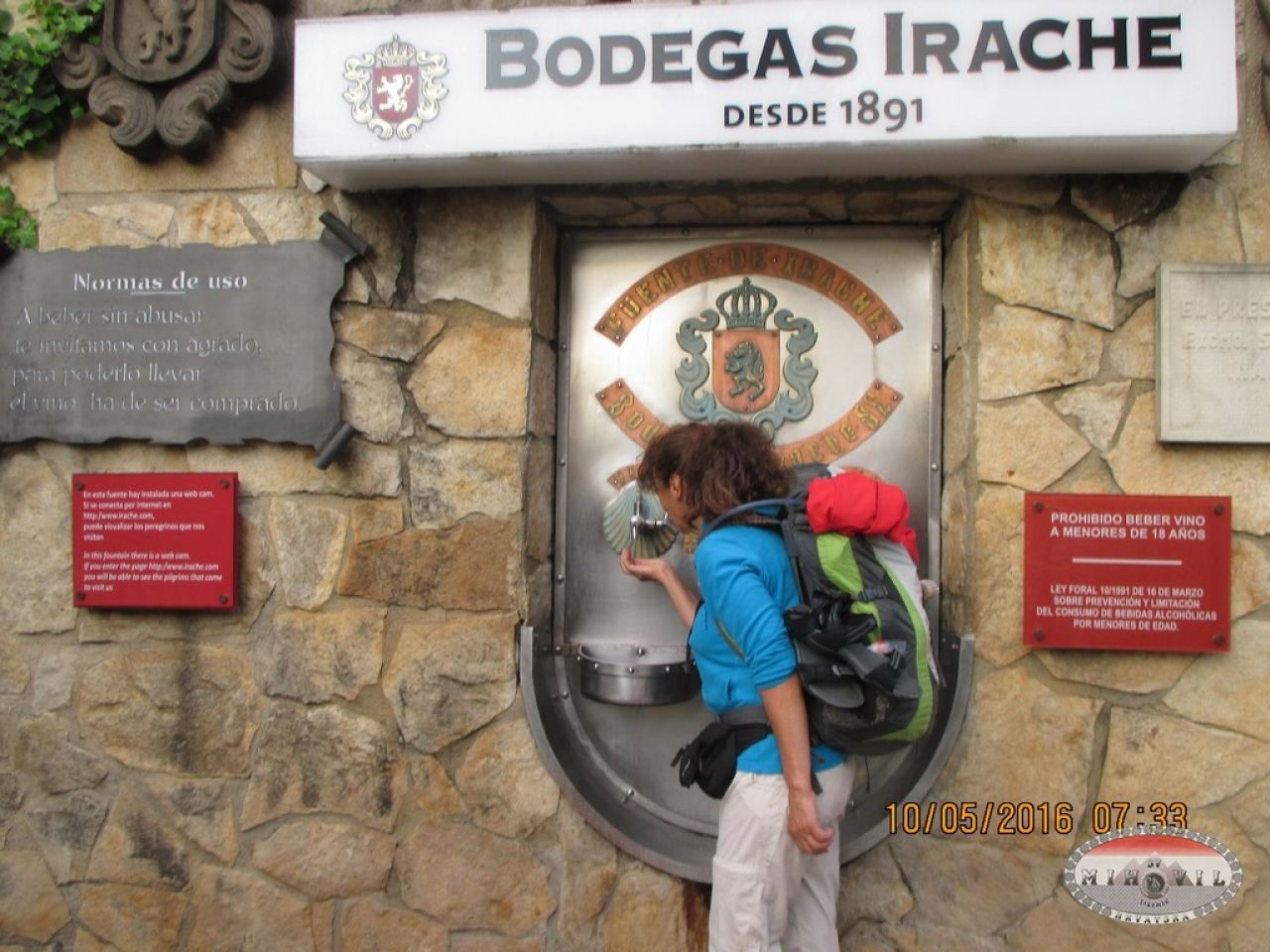 Dok sam planirala Camino, često sam nailazila na slike koje su se ponavljale i imale su moć. Kada sam se stvarno našla ispred njih mislila sam da sanjam: Poslije Estele, na raskrižju treba krenuti desno gdje se nalazi prekrasna, srednjovjekovna crkva, nekada sklonište za hodočasnike. Nasuprot nje izgrađen je jedinstveni zdenac na svijet, Fuente del vino, za njih, da se okrijepe na Putu. Tu se još može naliti čaša vina i čaša vode. S obzirom da se visina staze često mijenjala, stalno smo se penjali ili silazili. Iza Pamplone, padala je jaka kiša, a često je padala kiša, penjali smo se strmom stazom prema vjetrenjačama na Sierri del Perdon. Odjednom sam se našla ispred spomenika pelegrinosima, Alto del Perdon, na 734m/v. Nisam trebala znati španjolski, znala sam što piše na figuri: “…gdje se put vjetra ukršta sa zvjezdanim putom“.
