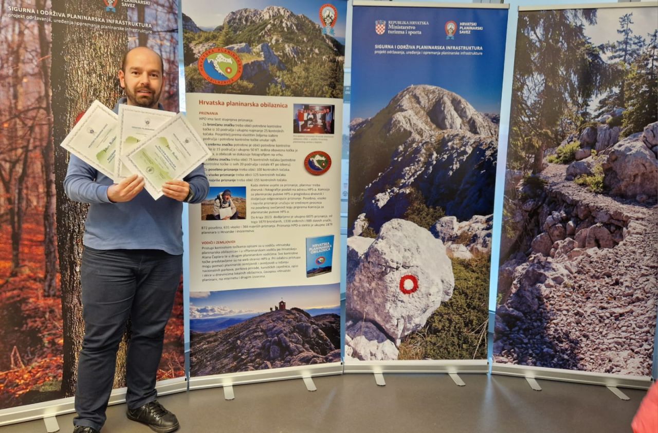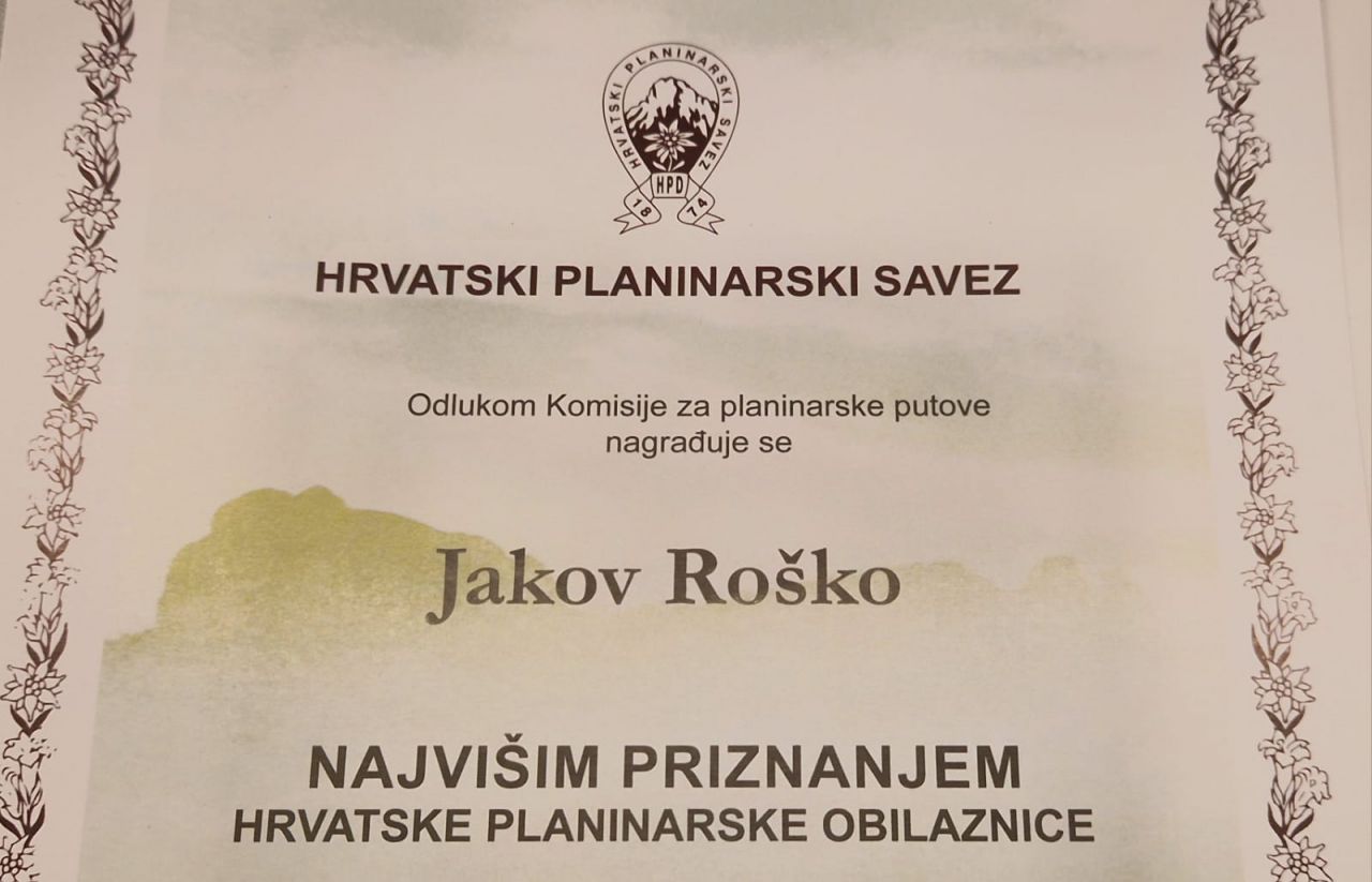 Danas je u Zagrebu naš član Jakov Roško primio najviše priznanje Hrvatskog planinarskog saveza za obilazak 158 kontrolnih točaka Hrvatske planinarske obilaznice!