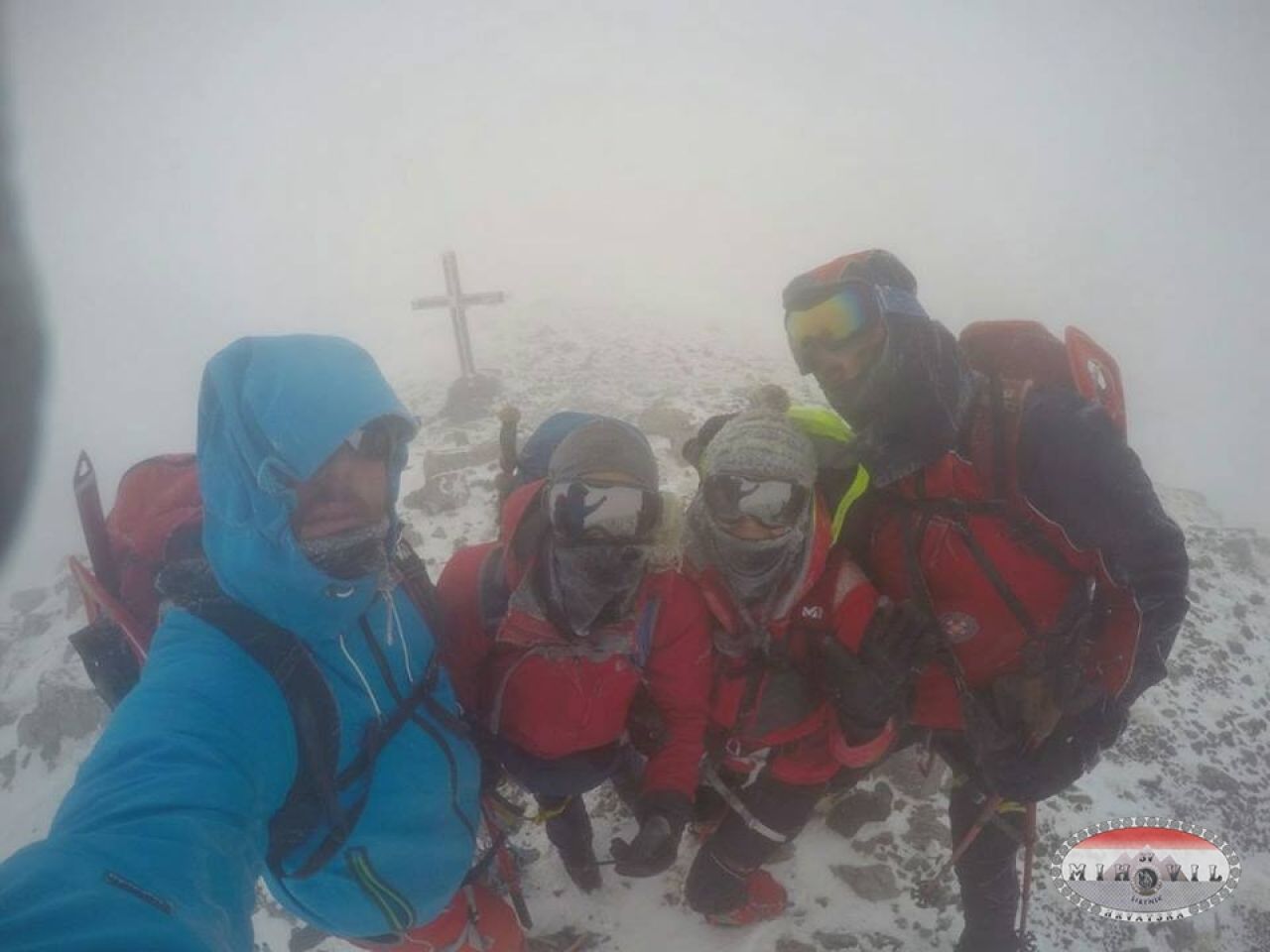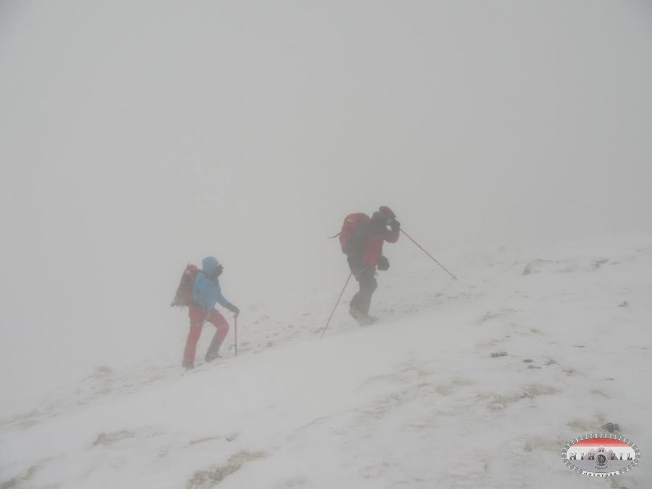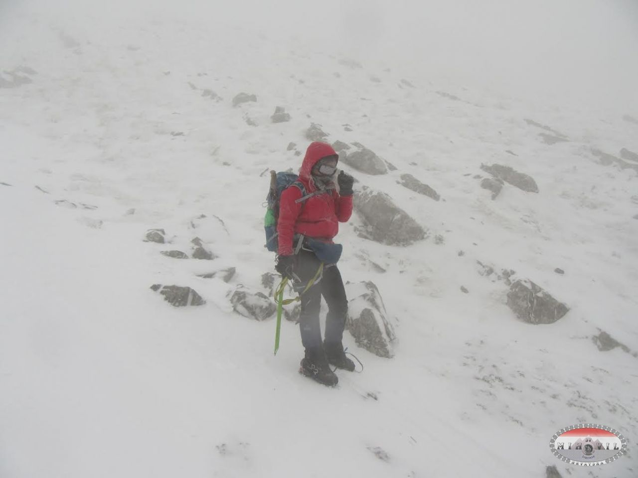 Odlučile smo se u ponedjeljak rano ujutro zaputiti sa još jednim kolegom na Sveto Brdo preko Libinja. Do Vlaškog Grada smo došli bez problema, mjestimično led ili nanosi snijega, tu smo brzinski marendali po pola smrznutog sendviča kad odjednom prema nama dolaze 2 planinara, a ko nego: Mošo i Luka. Nismo se prestali smijati i čuditi, ludi Mihovilci po orkanskoj buri po Velebitu se šetkaju, pa da smo se dogovorili ne bi se uskladili i pronašli. Dereze na noge, cepine u ruke, „omotani“ u opremu i robu krećemo hrabro naprid. Na putu prema vrhu teška borba, korak naprid - dva nazad, padanje na kolina u obrani od udara vjetra, izmaltretiralo me dosta to hodanje, marke nisu vidljive, ne preporučamo ići kolegama koji stazu odlično ne poznaju, malo pomalo klečeći i držeći se za klekovinu i kamenja stižemo do vrha, a 5 minuta iza nas dolaze Luka i Mošo. Slavlje i grljenje, brzinsko fotografiranje i hitamo nazad.