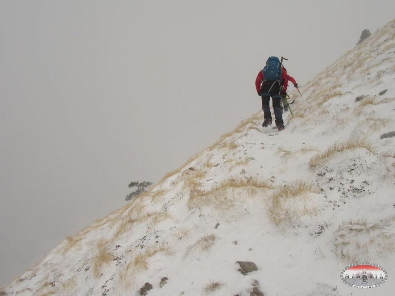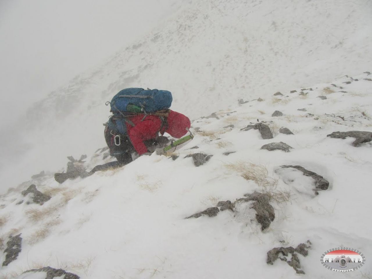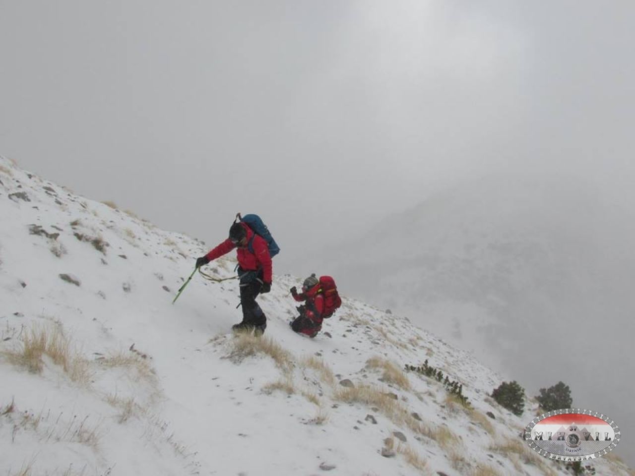 Njih dva su išli poprijeko dolje, mi istim putem. Dakle, da nije bilo GPS-a ne bi tako lako našli put. Ogromna magla po silasku, naši tragovi pokriveni novim nanosima, markacije nevidljive, nekih 20ak minuta smo zabucali, jadan GPS se malo izblesira, ali smo se po sjećanju sa ljetnih tura vratili, po prepoznatljivim stijenama i sličnim obilježjima.