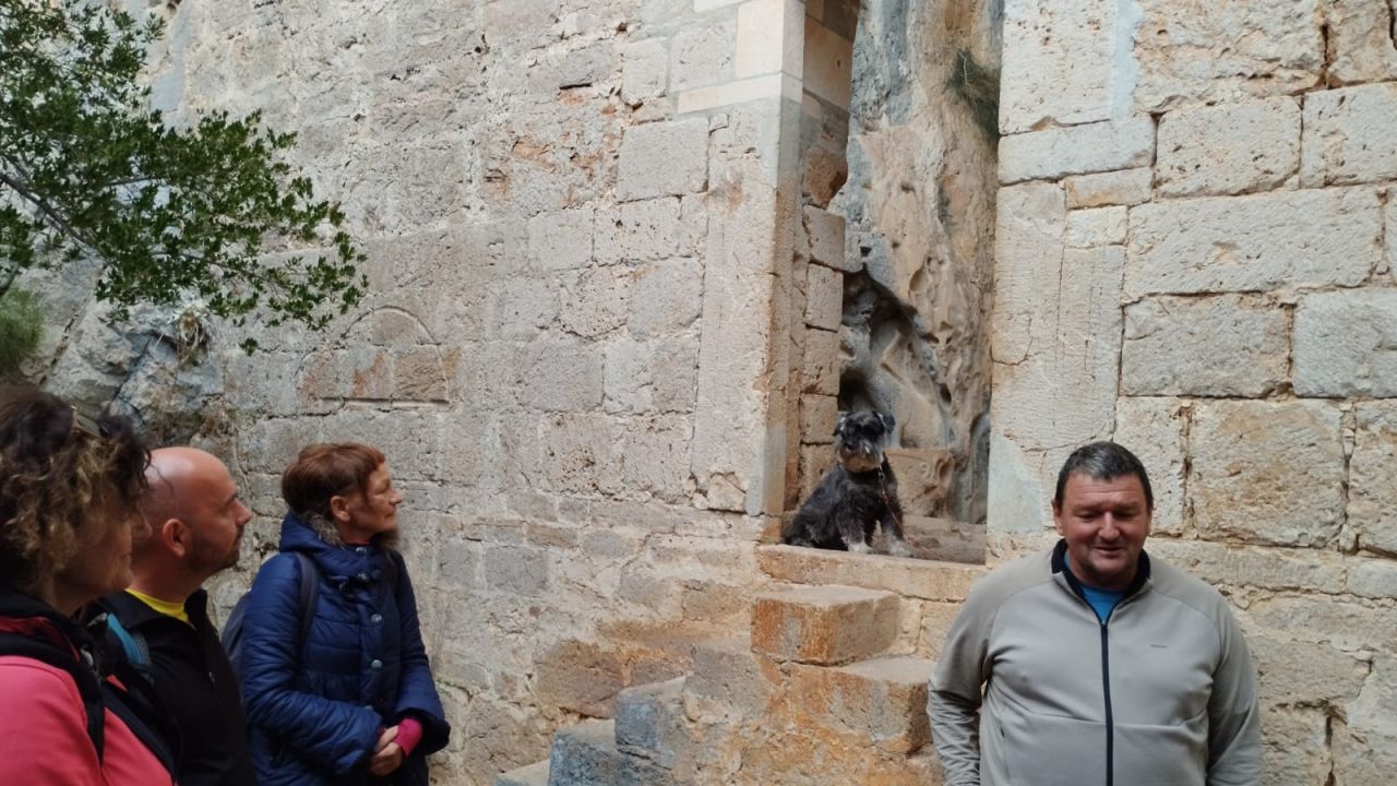 Do tog neobičnog i mističnog mjesta vodi jedino uspon strmom planinarskom stazom koju smo uz 2-3 pauze i Zoranova zanimljiva predavanja - s guštom svladali. Moglo smo mi to i brže - ali Branko je imao potpitanja. S obzirom na to da smo tolerantni - nije nam smetalo. Na kraju nije smetalo ni ljubaznom vodiču Zoranu kojega smo zarazili našom tolerancijom i smijehom (a mogli smo i Antonijinom virusom).