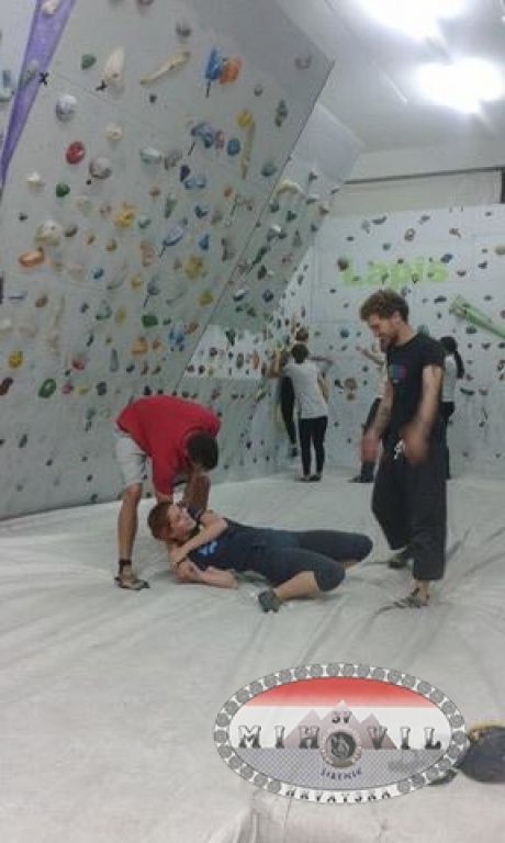 Kad je gradivo bilo već dobro utabano u našim mozgovima i kad su naš učitelj i asistenti već bili na pragu postizanja ekstaze od ponavljanja istih fraza čitav dan premjestili smo se na boulder gdje smo uz vesele ritmove glazbe iskušavali različite smjerove, od onih po "posebnom programu" do onih nadobudnih gdje ti panceta opet završi u grlu, u svakom slučaju po nešto za svakoga.