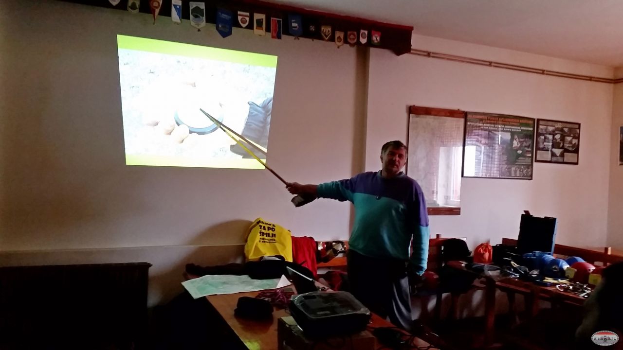 Sad malo detalja iz predavanja koja su prvo započela sa samin uzlovima, taj par njih a demonstraciju njih je vodila Antonija, dok ostali instruktori stoje oko nas i pomažu. Nakon odrađenih par uzlova prelazimo na teoriju i dirigentsku palicu ili u ovom slučaju metlu preuzima Teo (čisto da znate metla nije tu da nas s njom dohvati po glavi ako šta ne znamo nego radi pokazivanja detalja na projekciji). Tema njegova predavanja je bila „osnove orijentacije i kartografija“ u kojem je najpamtljiviji dio bio samo objašnjavanje azimuta, naočigled jednostavna definicija al eto, nitko je nije znao.