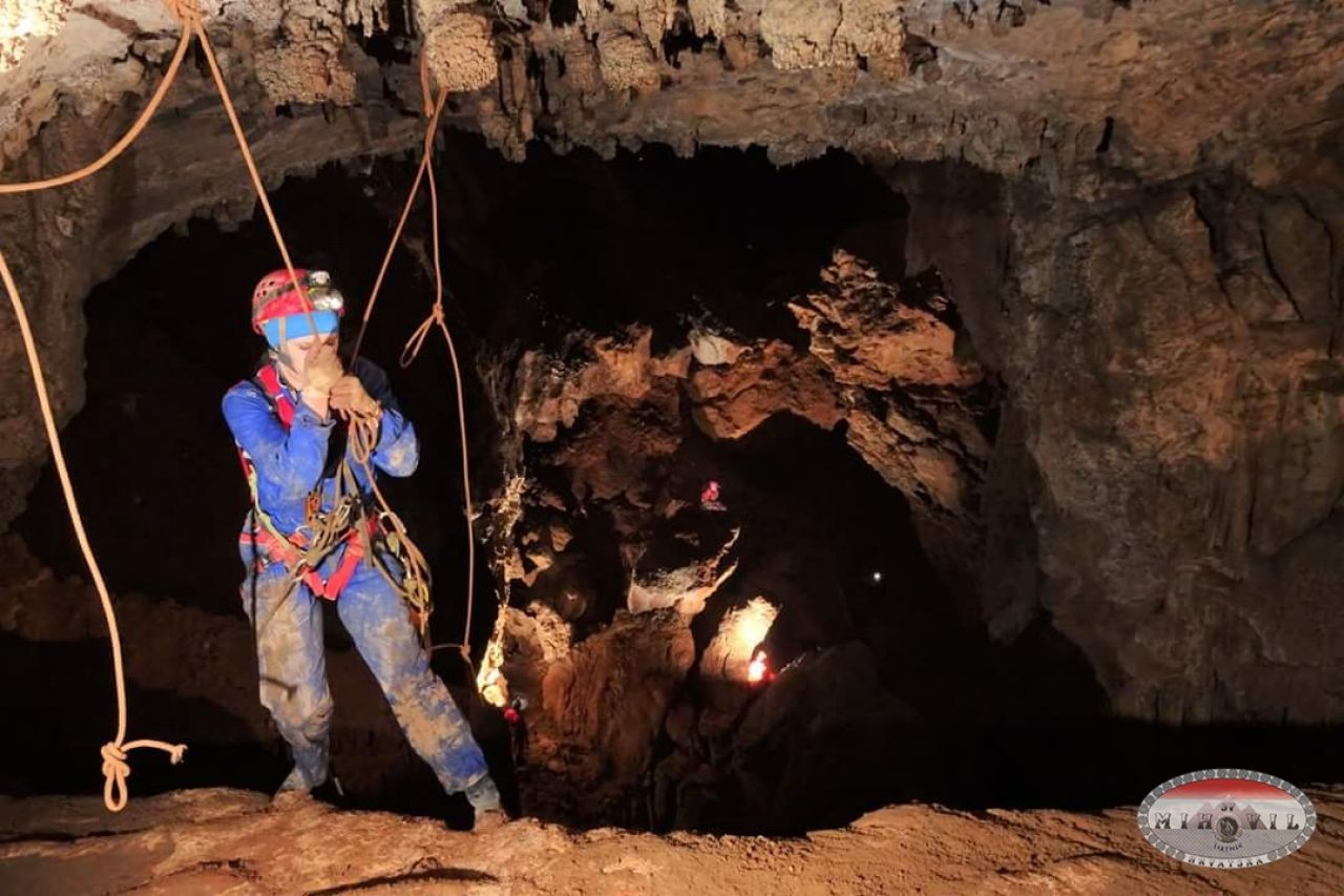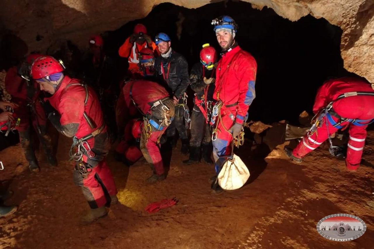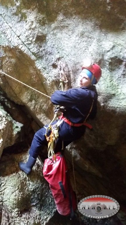 Uh…ajmo se spuštat, ovog puta svih 6 školaraca. Na samom ulazu zaradiš upalu mjehura kako puše, onda kreće vertikala od 100 metara, mračna, mokra, sa prenategnutim devijatorom… majko moja. Dotiču nam noge tlo I put nastavljamo sa uskim labirintima, manjim vertikalama I gacanjem u blatu. Svi se okupljamo kako bi napravili kratki izlet po obližnjim dvoranama. Teo je iskoristija priliku da nam uvali reflektore I ostala čuda za fotografiranje. Zadnja postaja su Svinjske nogice I ogromna dvorana u kojoj bacimo fotosešn I polako idemo natrag. Najiščekivaniji I najgori dio slijedi. 100 metara peglanja u mrklom mraku…..nakon uru vrimena pentranja nadzire se svitlo, vičem Marijani da stavi vodu za kavu-eto mene. Eto, položili smo I taj ispit. Ja sam bila pod totalnim dojmom,;šta je sve Stvoritelj utrpa pod to podzemlje to je divota, bravo stari I Ti si položija Kitu!