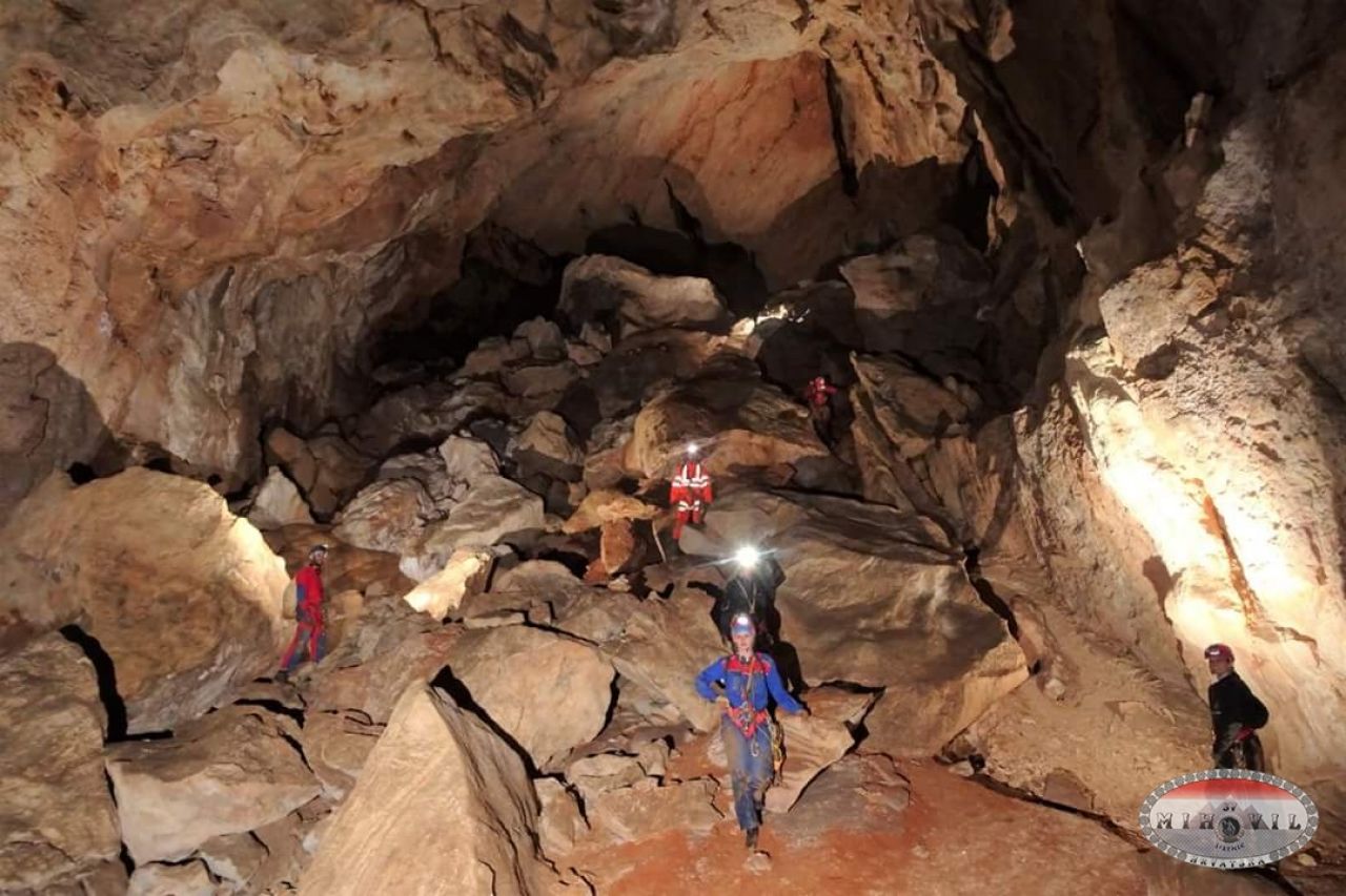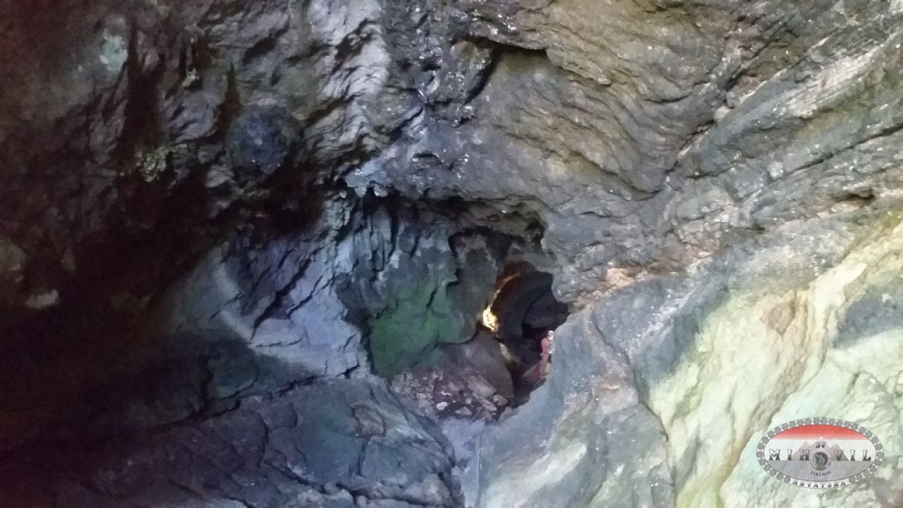 Nakon još jedne vesele vožnje u kombiju po neravnoj biloj cesti i skakutanja po cilom kombiju stižemo do samoga rudnika (op.p. klik ko želi znati više). Ulazak u sam rudnik s ceste se ne vidi, jer se naruši ruševna kamena kuća ispred njega. Spust u rudnik je negdje pod kutom od 30-35 stupnjeva nagiba, zemlja pod nogama, strop na mjestima dosta nizak i srećom po mene što sam imao kacigu jer bi zbog svoje nenaviknutosti imao par čvoruga na glavi pri izlasku iz rudnika, ali dosta o tom, nakon završetka spusta u rudnik dolazimo do impresivne dvorane u rudniku koja je nastala tako što su rudari izvadili boksit i ostavili oblik samog okolnog kamena netaknutim, što samu dvoranu čini impresivnom i zanimljivom kad se 15-20 metara iznad vaše glave vide stare grede koje su rudari prije koristili za izvlačenje rude. Sama dužina dvorane meni je nepoznata jer joj kraj nisam vidio, ali vodila je niže u sljedeću razinu rudnika. Na tom mjestu Teo priča o samoj povijesti rudnika, kad je nastao, kakav je utjecaj imao na države pod kojima je bio, koliko je zapravo siguran bio, jer broj žrtava je bio zbog samog rudarenja. Nakon interesantnih priča o rudniku i njihovim iskustvima u istraživanju rudnika skupina se zapućuje nazad prema izlazi, gdje na pola puta stajemo kako bi odradili provlačenje kroz uski prolaz, provjerili kako smo naučili vezivanje uzla bulin i svrhu osiguravanja nas samih dok smo se penjali uz improvizirane skale od konopa.