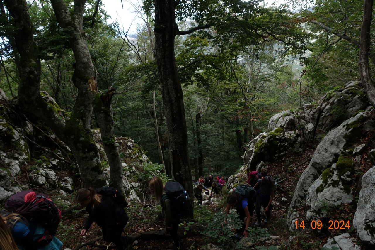 Bilo je dijelova kad smo morali i rukama i nogama popeti se preko stijena, pazeći da ne padnemo i time povučemo sve za sobom. Marina, naša vodičica na čelu kolone, nam je rekla da dobro pazimo gdje stavljamo ruke pri takvim usponima. Poskoci se lako mogu kamuflirati. Mislim da su neki od nas već zamišljali kako nam iz zasjede jedan skače na vrat. Srećom, nismo naišli na naše gmizave prijatelje!