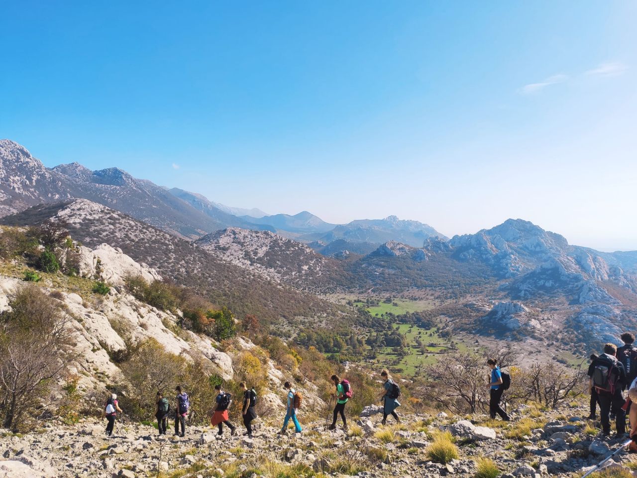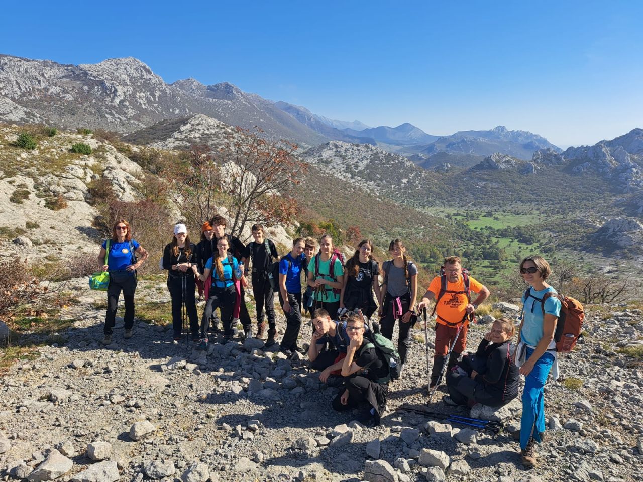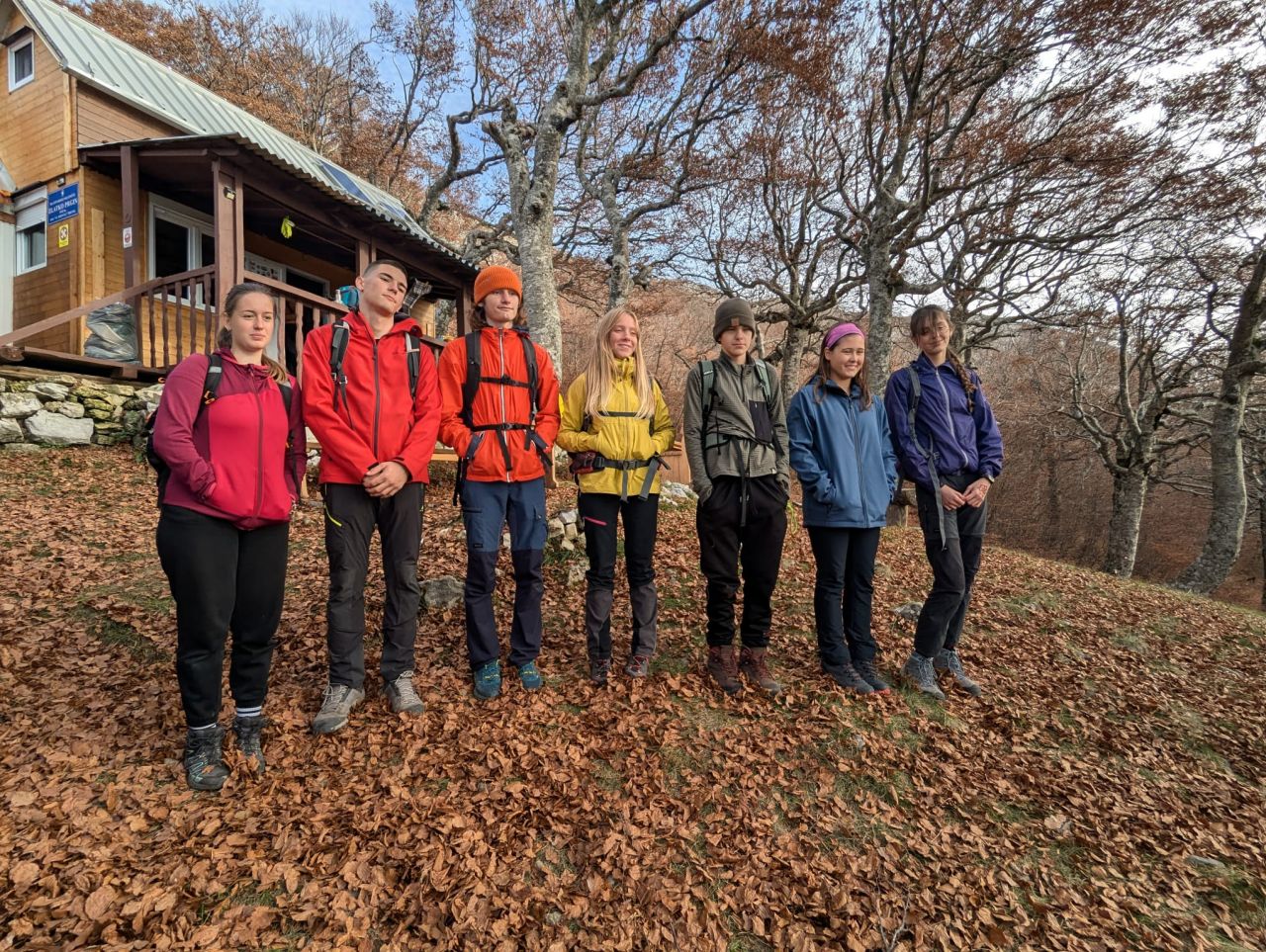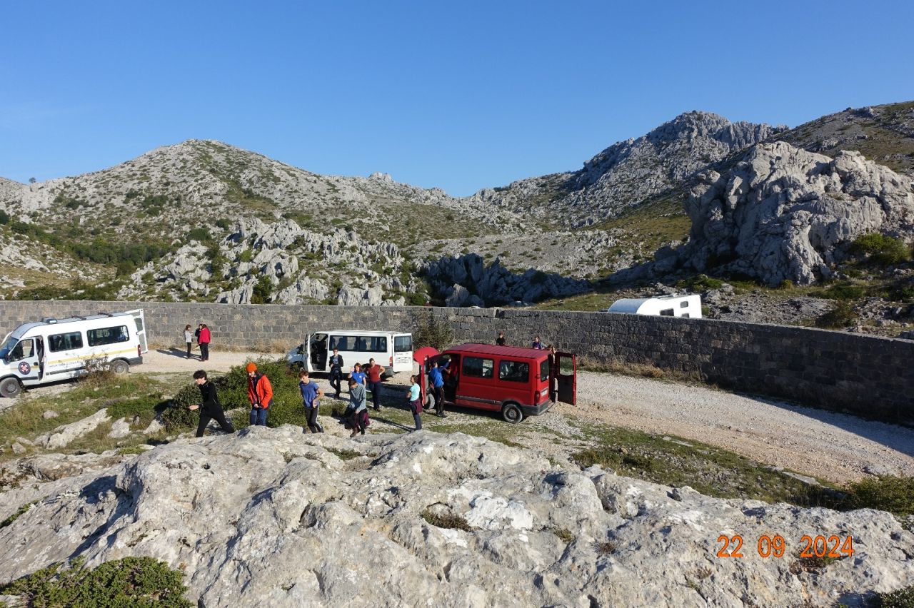 (Ana) S uzbuđenjem iščekujem naš zadnji izlet na Dinaru, tu kršku ljepoticu iz koje izvire rijeka Cetina. Dinara s vrhom Sinjal (1831 m/nv) najviša je hrvatska planina, pa je zato moje uzbođenje bilo veće. Bio je to dvodnevni izlet, 26. i 27.10.2024. Polazak je bio u 7:00 iz Šibenika, a Sara i ja (Ana) šibensku ekipu čekale smo u Drnišu. Preko obronka Svilaje uputili smo se put Vrlike, prema selu Mirkovići u podnožju Dinare. Tu kreće naš uspon prema planinarskoj kući Brezovac u kojoj noćimo.