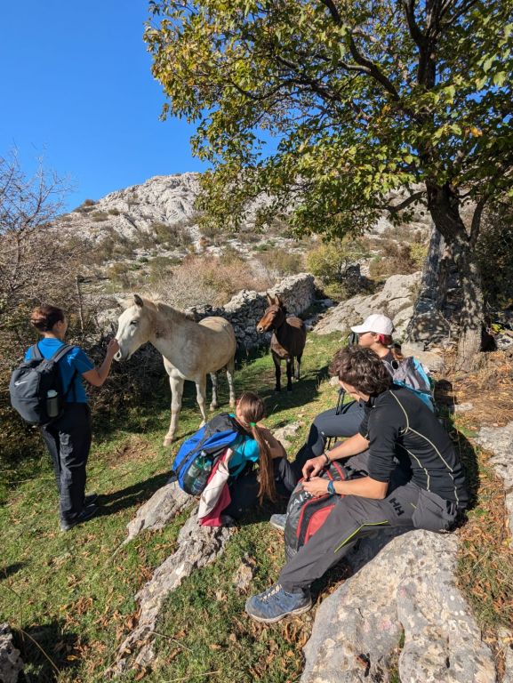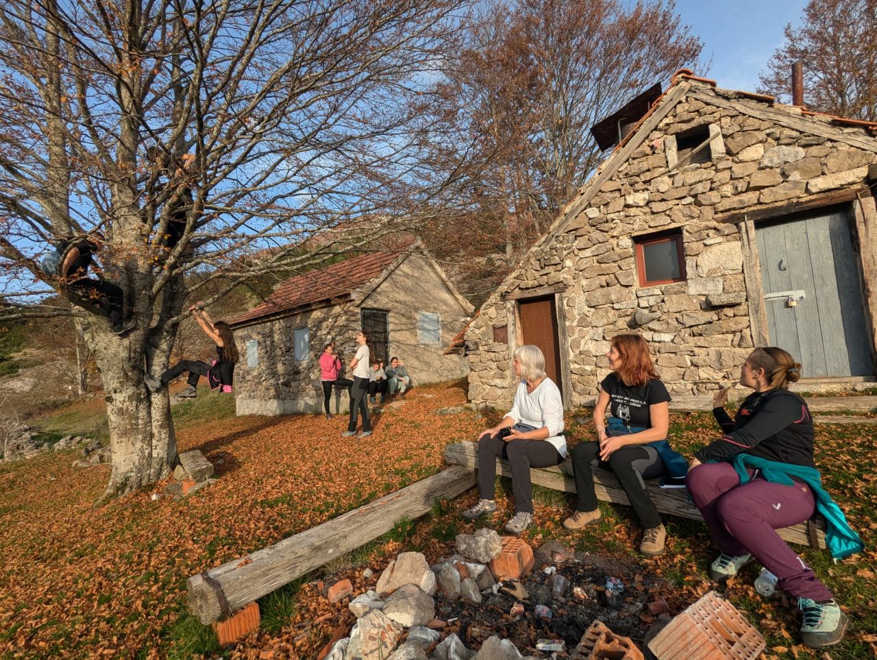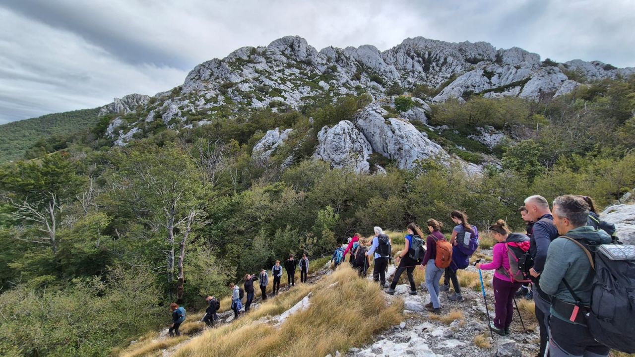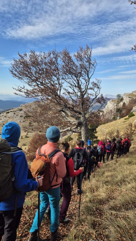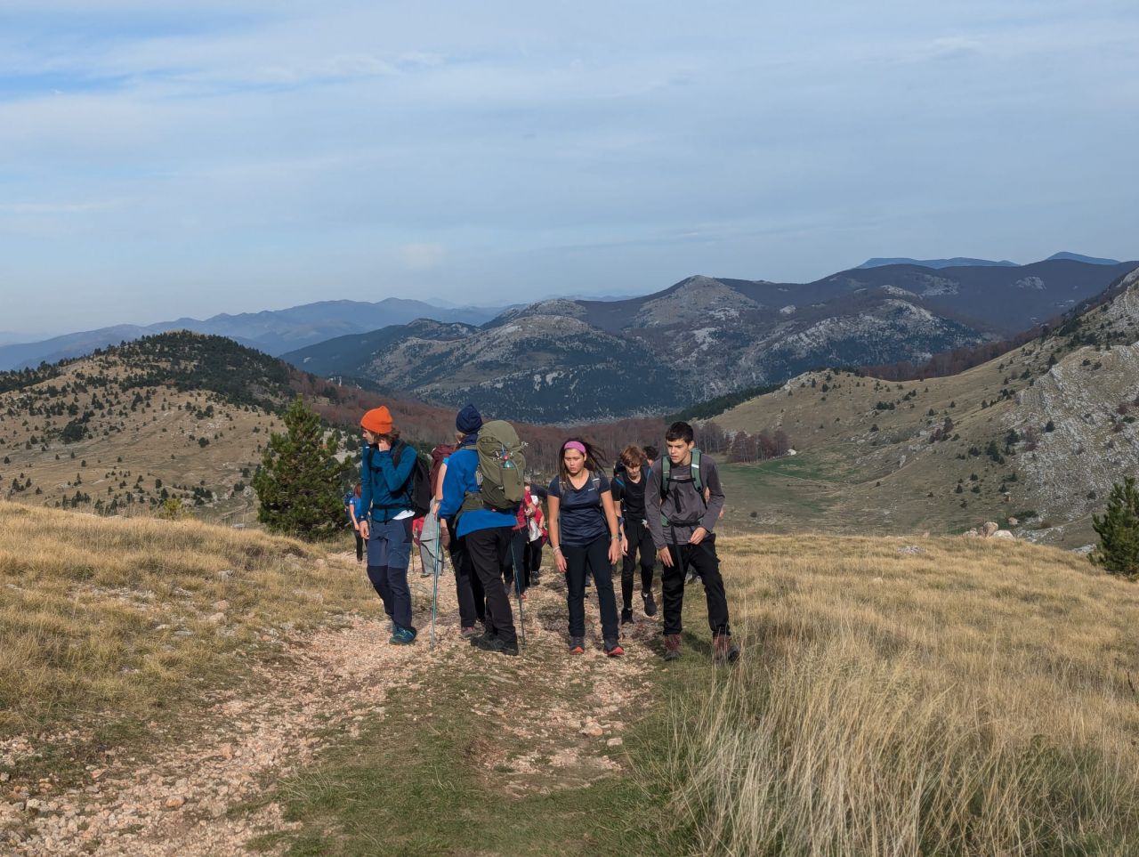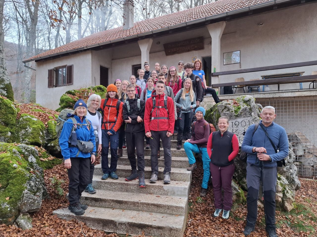 (Ana) S uzbuđenjem iščekujem naš zadnji izlet na Dinaru, tu kršku ljepoticu iz koje izvire rijeka Cetina. Dinara s vrhom Sinjal (1831 m/nv) najviša je hrvatska planina, pa je zato moje uzbođenje bilo veće. Bio je to dvodnevni izlet, 26. i 27.10.2024. Polazak je bio u 7:00 iz Šibenika, a Sara i ja (Ana) šibensku ekipu čekale smo u Drnišu. Preko obronka Svilaje uputili smo se put Vrlike, prema selu Mirkovići u podnožju Dinare. Tu kreće naš uspon prema planinarskoj kući Brezovac u kojoj noćimo.