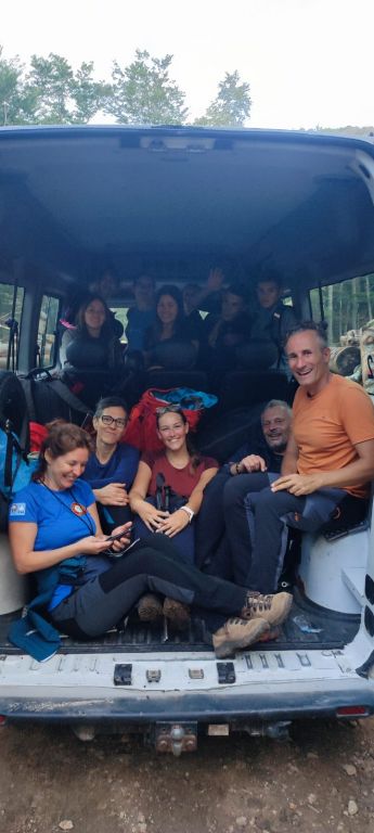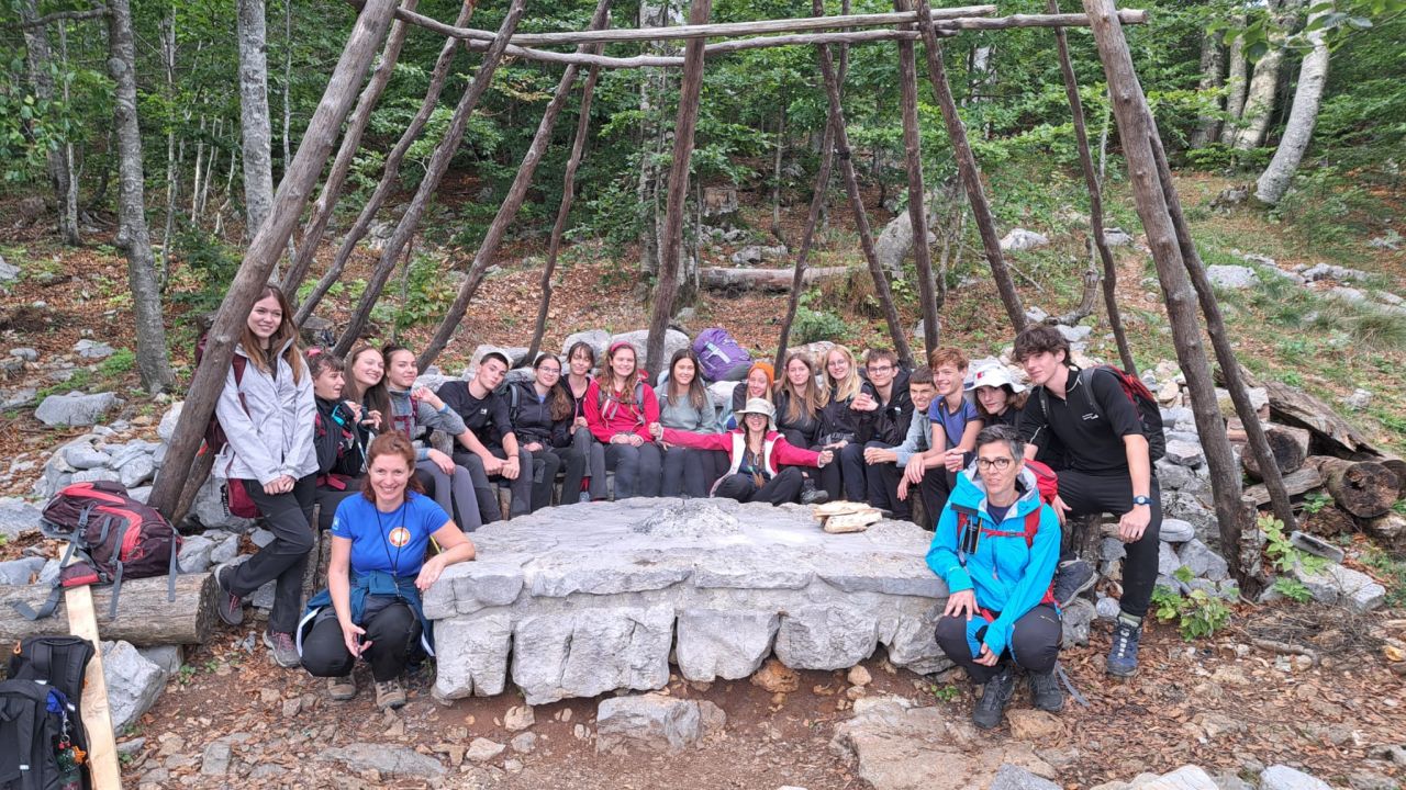 U nedjelju, 22. rujna 2024., u jutarnjim satima smo se svi naredali ispred tri kombija i krenuli. Jutarnja vožnja je bila poprilično tiha, a oni koji nisu zijevali su spavali. Dva sata vožnje kasnije, preko makadama, došli smo do Tulovih greda. Tamo smo napravili kratku pauzu te poslušali par zanimljivih činjenica od našeg vodiča nakon kojih smo mislili nastaviti vožnju makadamom. Ipak, to se nije dogodilo samo tako. Akumulator jednog od kombija se pokvario. Dok su se svi vodiči gužvali oko haube, mi smo još malo gledali vrhove i pričali. S možda popravljenim akumulatorom smo nastavili naprijed, a kada se maloprije spomenuti kombi potpuno zaustavio malo smo ubrzali do kraja makadama te se parkirali. A onda smo opet čekali da vodiči kombijem odu po ostatak ekipe. Kada su se razdvojene grupe napokon spojile krenuli smo u šumu.