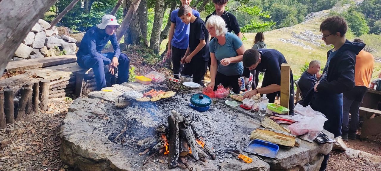 Planinarenje je završilo brzo, pa smo imali par sati odmora prije nego smo trebali početi roštiljati. Za roštiljanje su bili zaduženi svi muški, dok su nekoliko cura radile salatu.