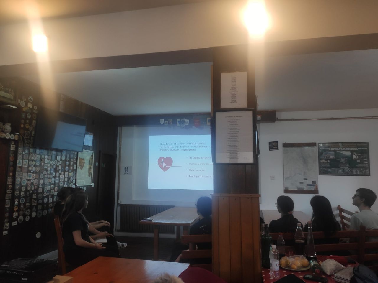 Već su pristigli drugi članovi društva koji su nam prenijeli stvari i dočekali nas s roštiljem. Nastavljamo druženje, a neki su radili i bivke. Uvečer su nam Gušte i Svjetlana ispričali svoje priče o Drekavcu. Bilo je zanimljivo slušati ih. Usljedio je sat likovnoga, trebali smo nacrtati osobu ispred sebe. Radova je bilo uspješnih, i malo manje uspješnih. Neki su se prepoznali, a neki baš i ne. Svakako, svi smo se dobro zabavili. Sutra nas čeka uspon na Sinjal, pa se na počinak trebalo poći.